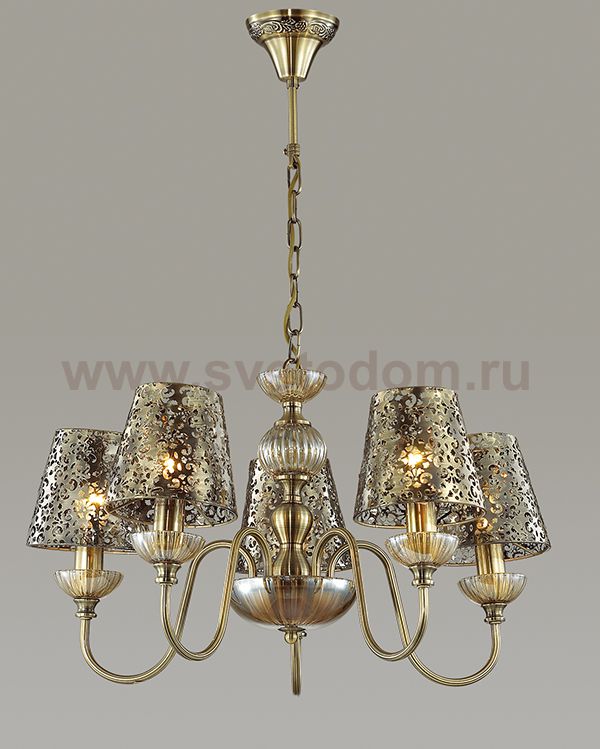 Люстра 3260/5 серии Godelina оформлена в классическом стиле. Люстра состоит из роскошных ажурных металлических абажуров и арматуры бронзового цвета, украшенной стеклянными декоративными элементами, что добавляет данной модели еще больше изящности. Цоколь E14. Мощность 5x60W. Нет ламп в комплекте.
