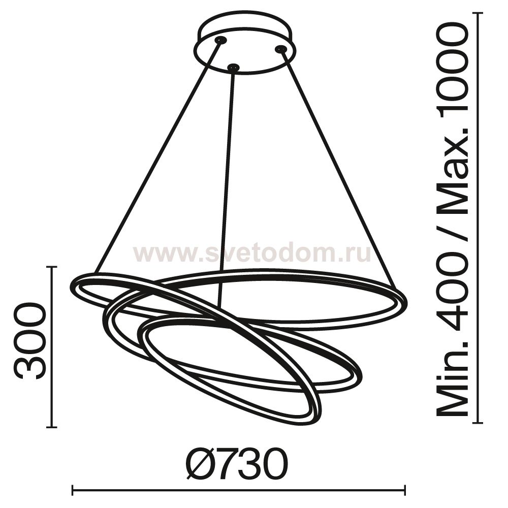 Материал арматуры – алюминий, порошковое окрашивание. Цвета - белый, латунь. . Источ ник света – SMD-светодиоды, скрытые под опаловым диффузором. Два варианта регулируемой цветовой температуры - 2600К-3500К и 3000К-4000K. Высота регулируется тросами.