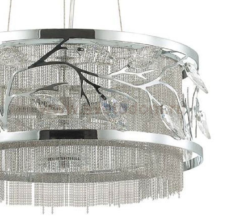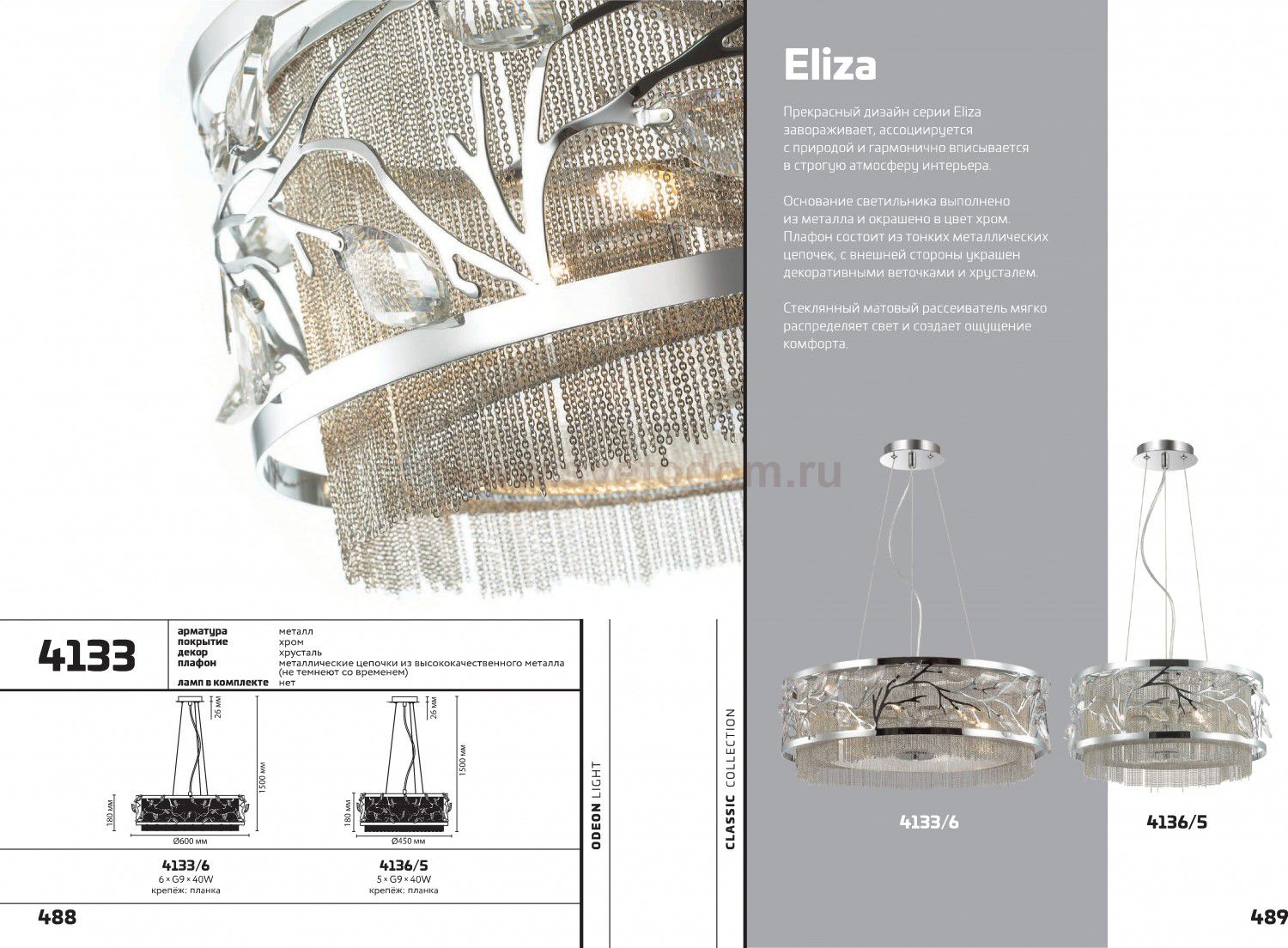 Прекрасный дизайн линии Eliza завораживает, ассоциируется с природой и гармонично вписывается в строгую атмосферу интерьера. Основание светильника выполнено из металла и окрашено в цвет хром. Плафон состоит из тонких металлических цепочек, с внешней стороны украшен декоративными веточками и хрусталем. Стеклянный матовый рассеиватель мягко распределяет свет и создает ощущение комфорта
