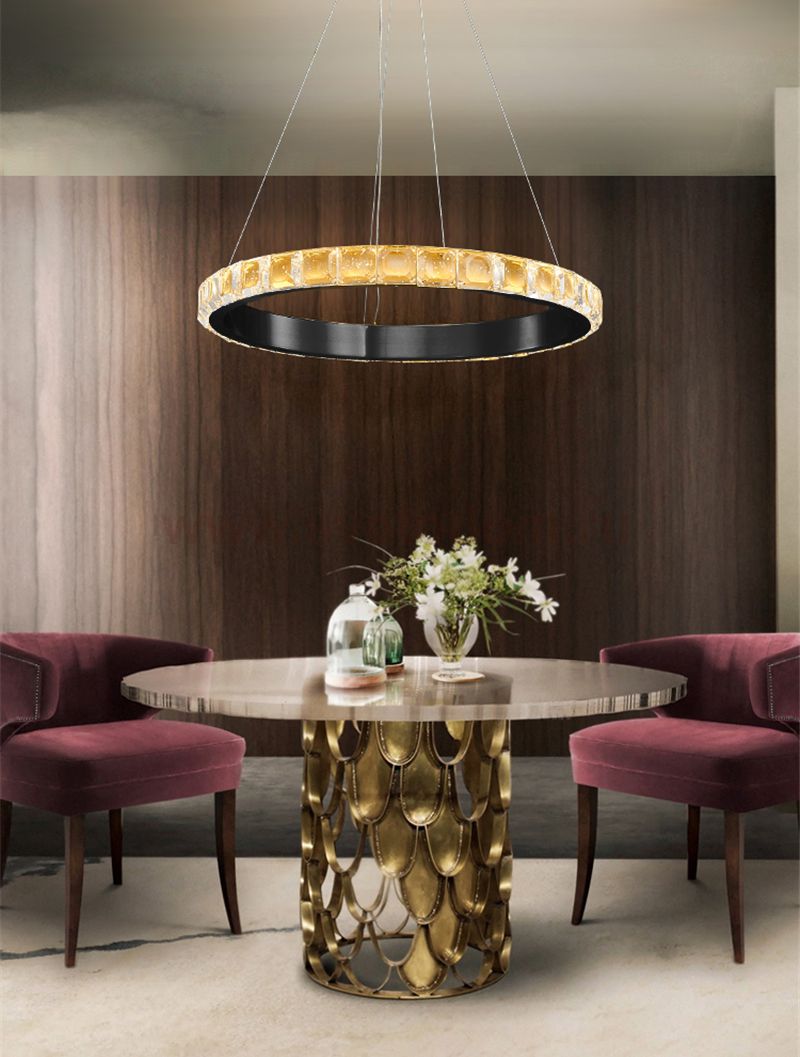 Люстра Delight Collection OMB81072/60 black в виде кольца с крупными кристаллами из прозрачного стекла на каркасе из металла черного цвета. |