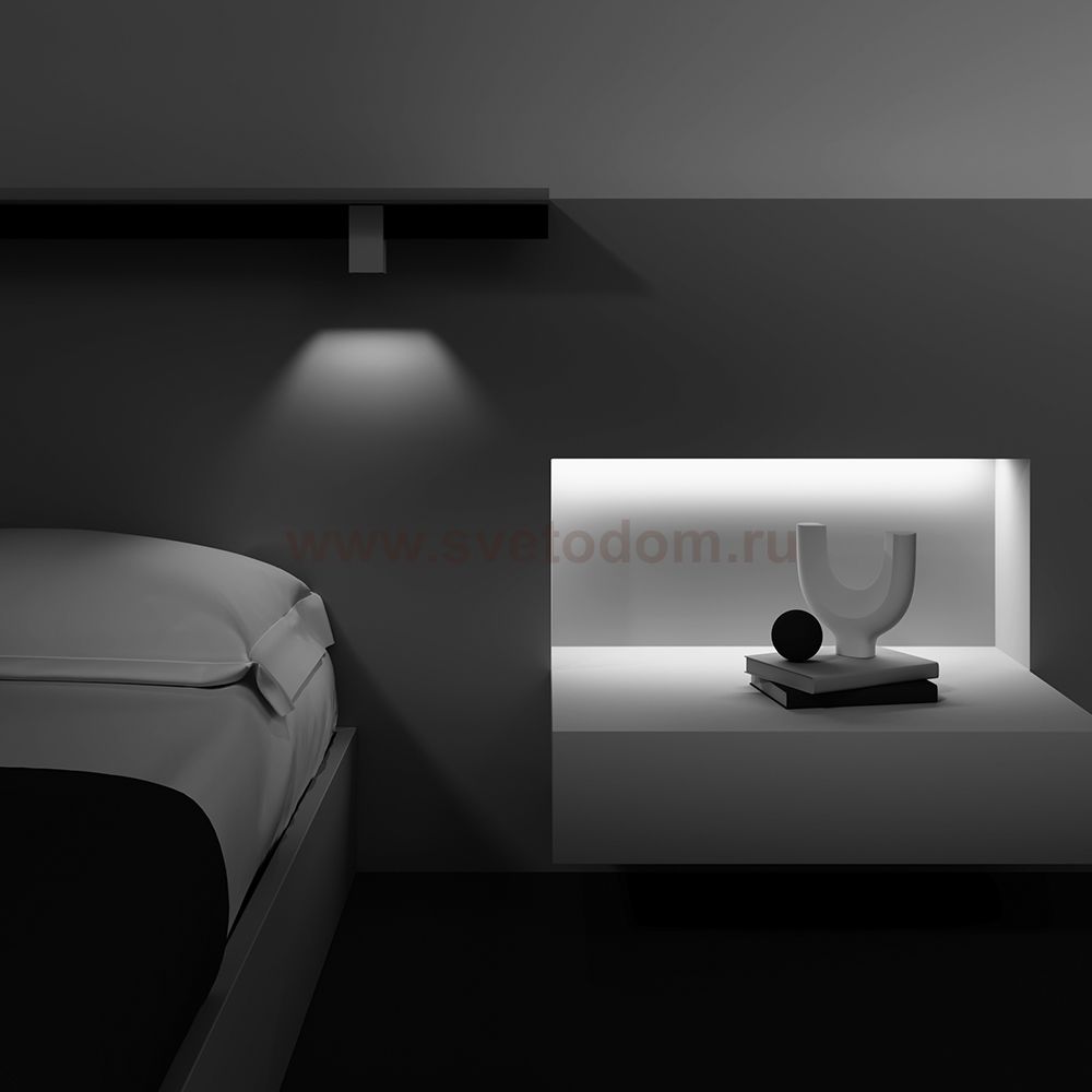 Алюминиевый корпус. Цвета - белый, черный и латунь с черным коннектором для установки в магнитный шинопровод Exility. LED-источник света. Два варианта цветовой температуры - 3000К и 4000К, а также умные светильники с регулировкой цветовой температуры от 3000 K до 6000 K и диммированием по протоколу Bluetooth Mesh. Источник света утоплен вглубь плафона для комфорта зрения. Корпус модели — форма вытянутого куба и цилиндра.