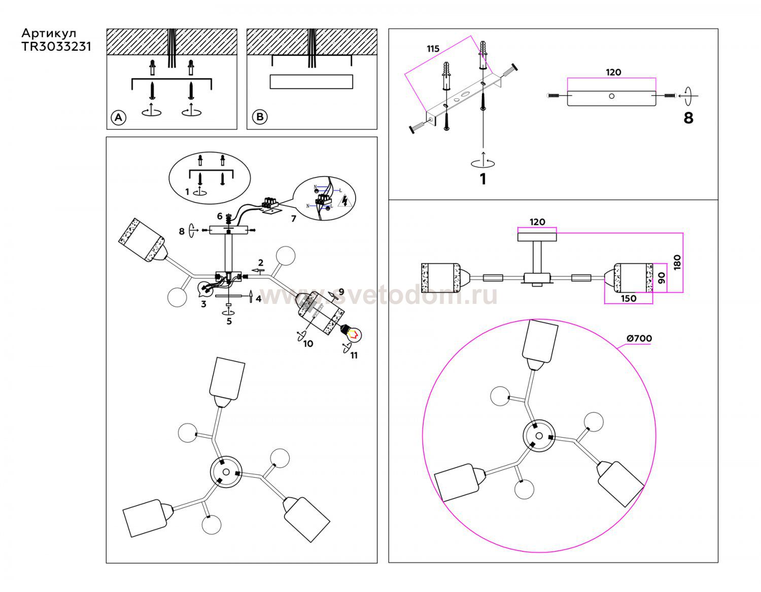 ![]() Люстра на штанге со стеклянными плафонами Ambrella TR303042/4 CP медь E27/4 max 60W 420*420*260 6470 руб.