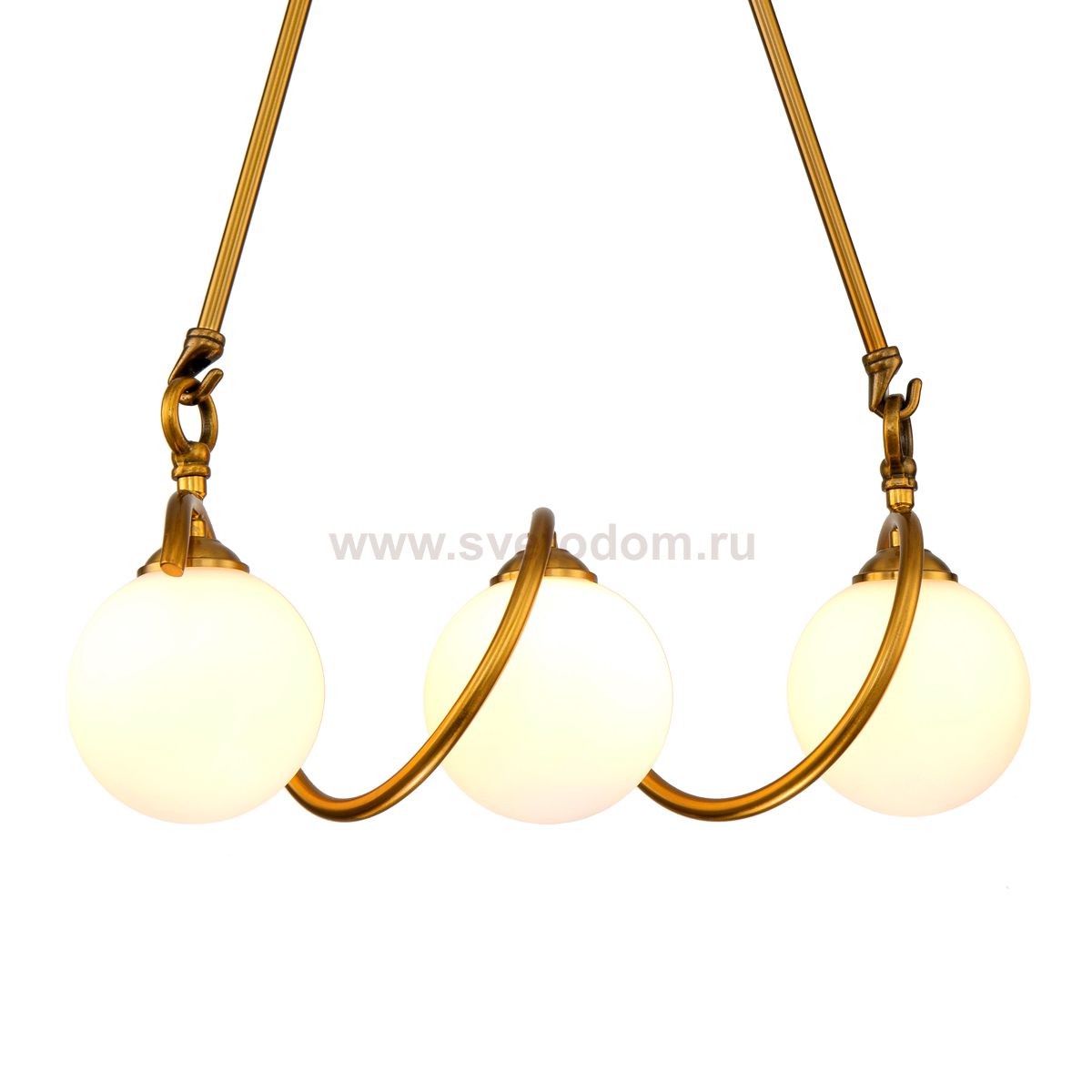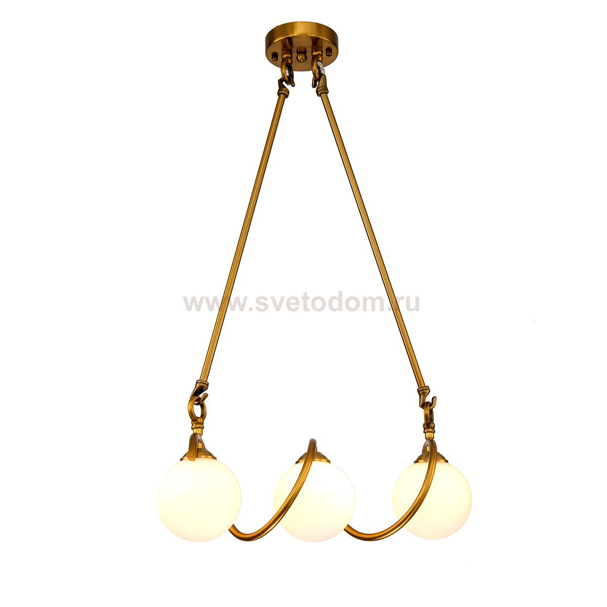 Люстра Delight Collection KG1212P-3 brass с тремя круглыми плафонами из матового стекла и арматурой цвета латунь. |