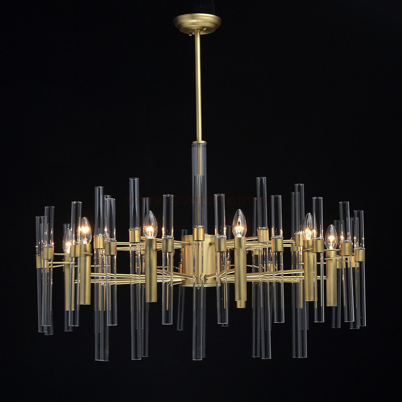 Основание светильника выполнено из металла и гальванизировано в цвет латуни с патинированием. Декор в виде стеклянных полых трубок. Комментарий