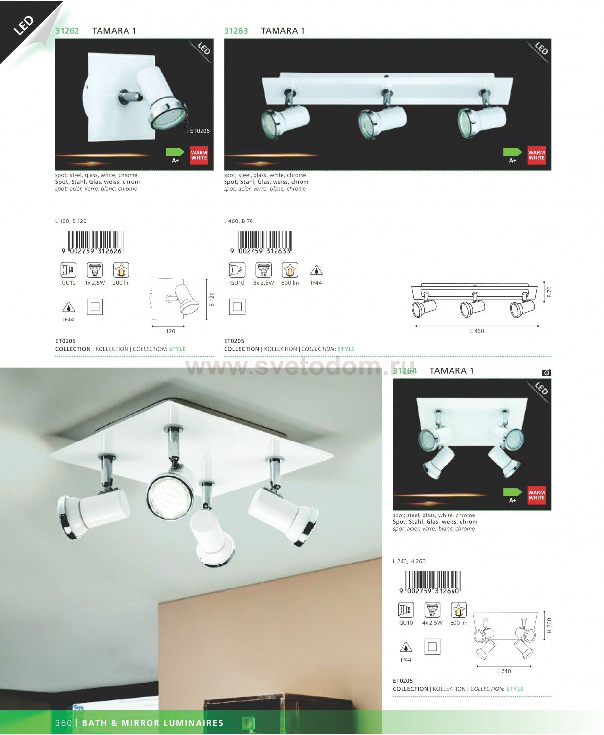 Светильники-споты – это оригинальные изделия с современным дизайном. Они позволяют не ограничивать свою фантазию при выборе освещения для интерьера. Такие модели обеспечивают достаточно качественный свет. Благодаря компактным размерам Вы можете использовать несколько спотов для одного помещения. Интернет-магазин «Светодом» предлагает необычный светильник-спот Eglo 31262 по привлекательной цене. Эта модель станет отличным дополнением к люстре, выполненной в том же стиле. Перед оформлением заказа изучите характеристики изделия. Купить светильник-спот Eglo 31262 в нашем онлайн-магазине Вы можете либо с помощью формы на сайте, либо по указанным выше телефонам. Обратите внимание, что у нас склады не только в Москве и Екатеринбурге, но и других городах России.