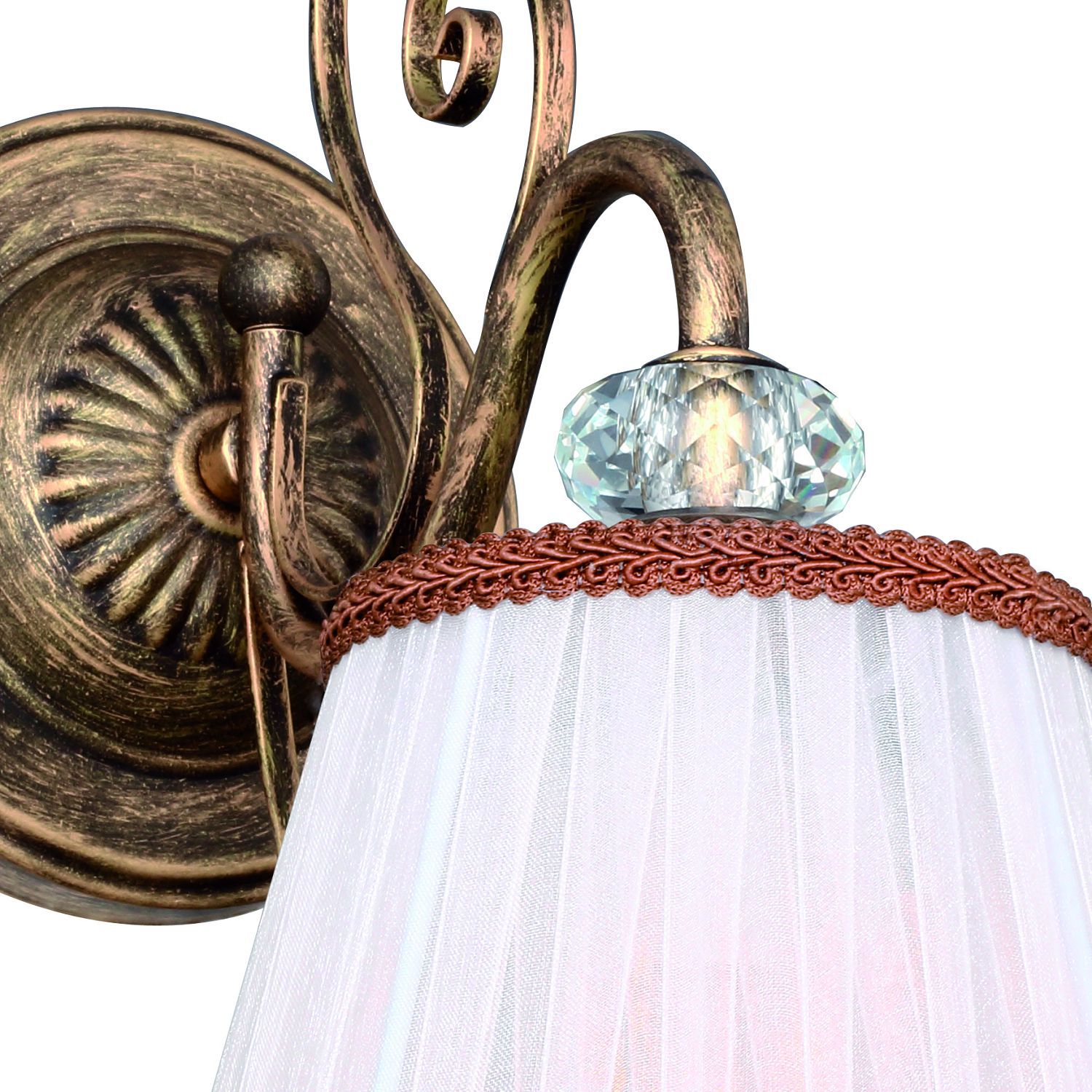 Каркас коричневого цвета с золотой патиной, абажур из белой органзы, хрусталь высшего качества. Материал плафона