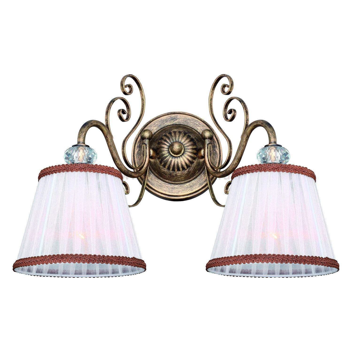 Каркас коричневого цвета с золотой патиной, абажур из белой органзы, хрусталь высшего качества. Материал плафона