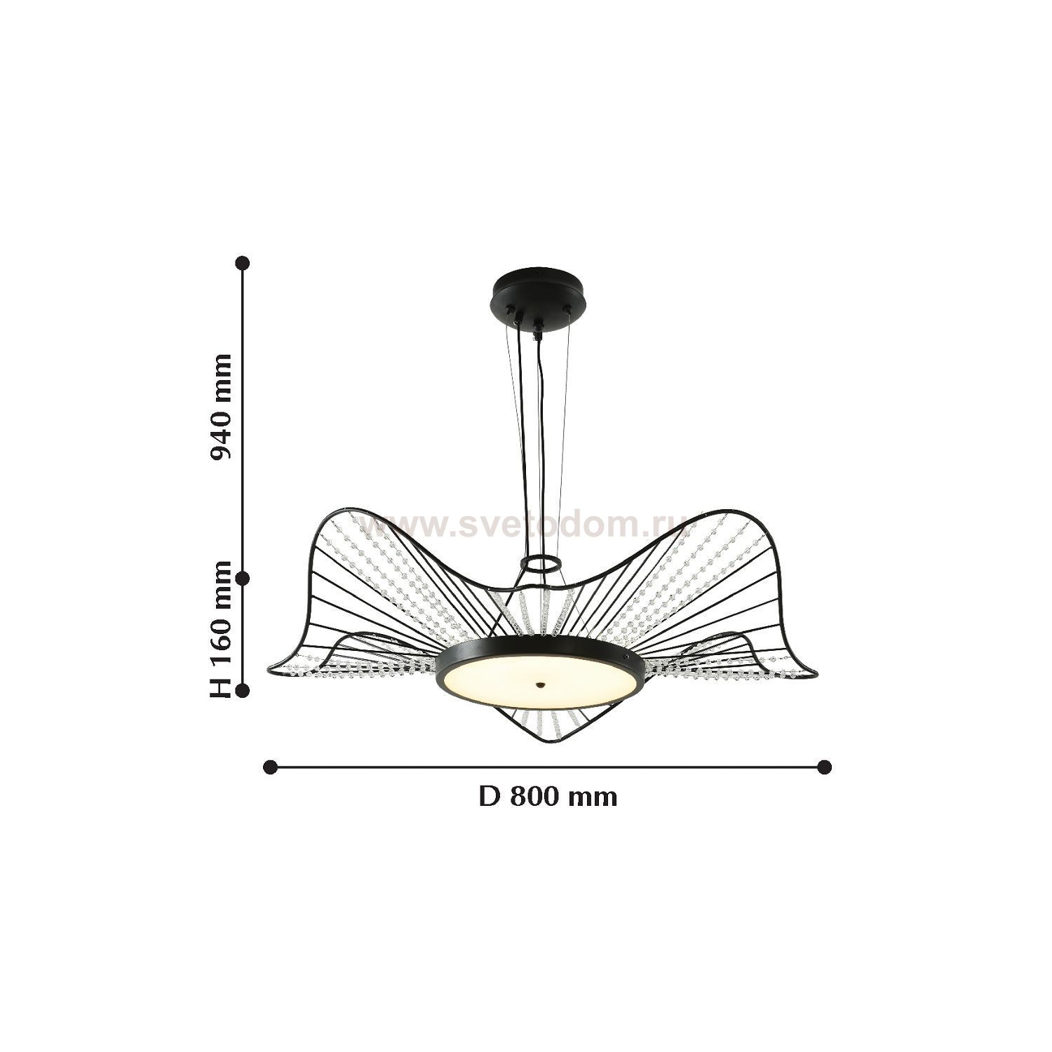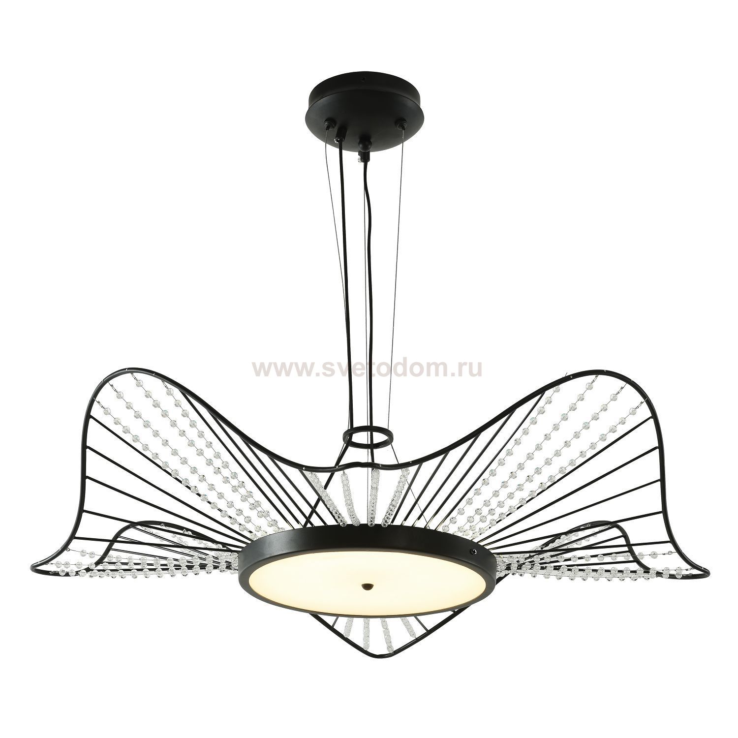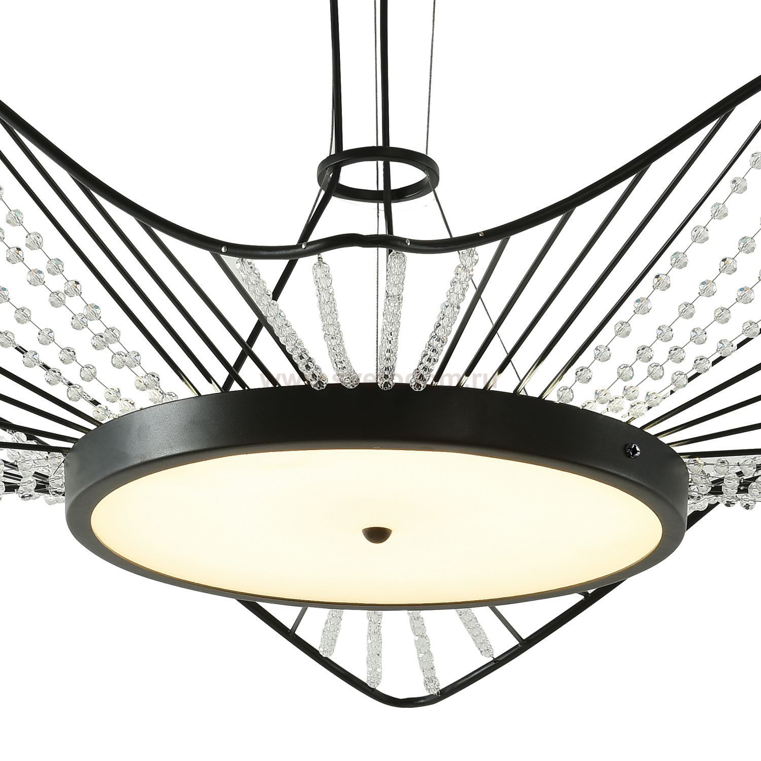 каркас черного цвета, декор из цепочек с хрустальными шариками, белый матовый рассеиватель для модуля LED из акрила, дополнительная подсветка LED сверху над плафоном. Штрих-код