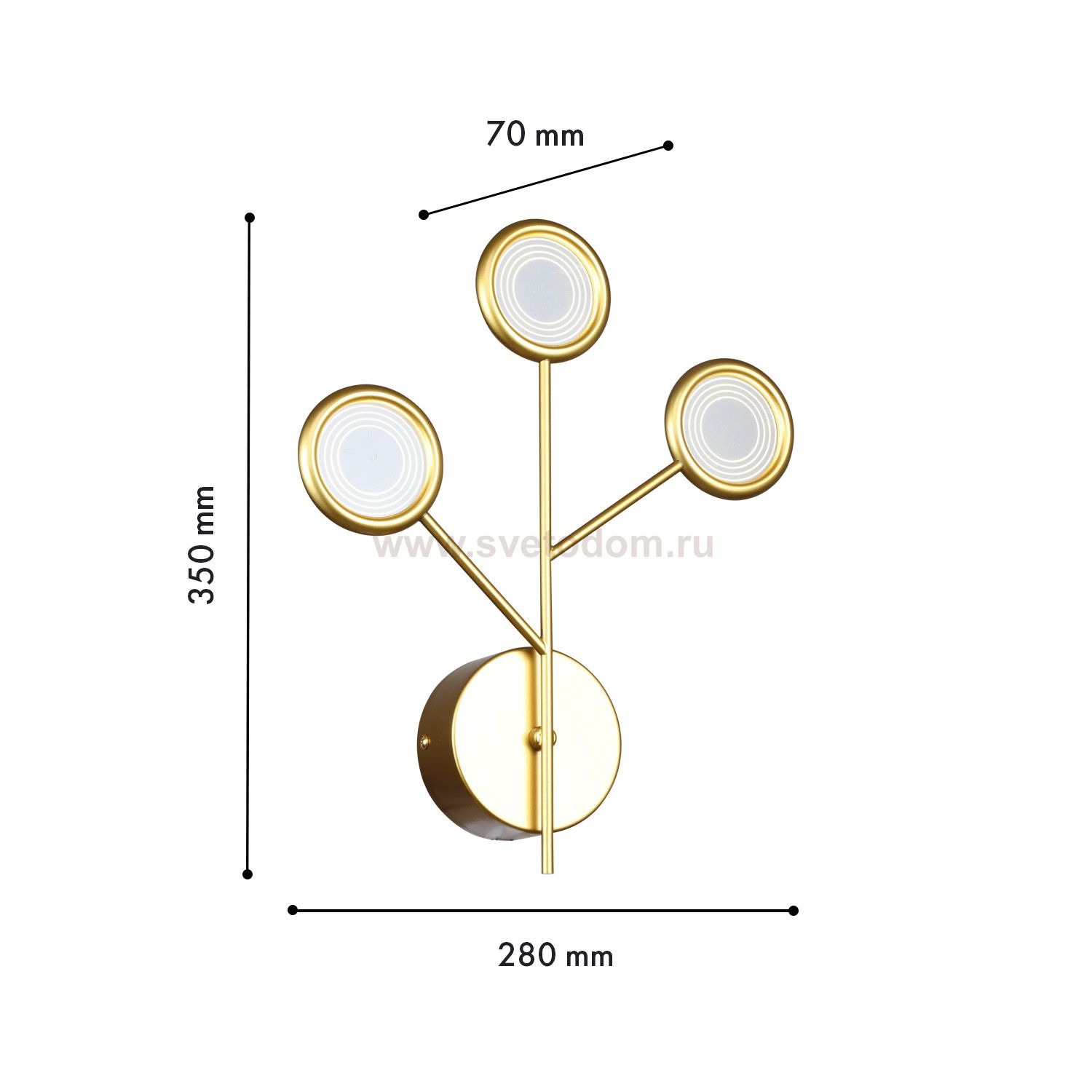 Настенный светильник с матовым золотым каркасом, внутренний периметр плафонов подсвечен лентой-LED, 3D-эффект усиливается за счет нанесенного на акрил Серия