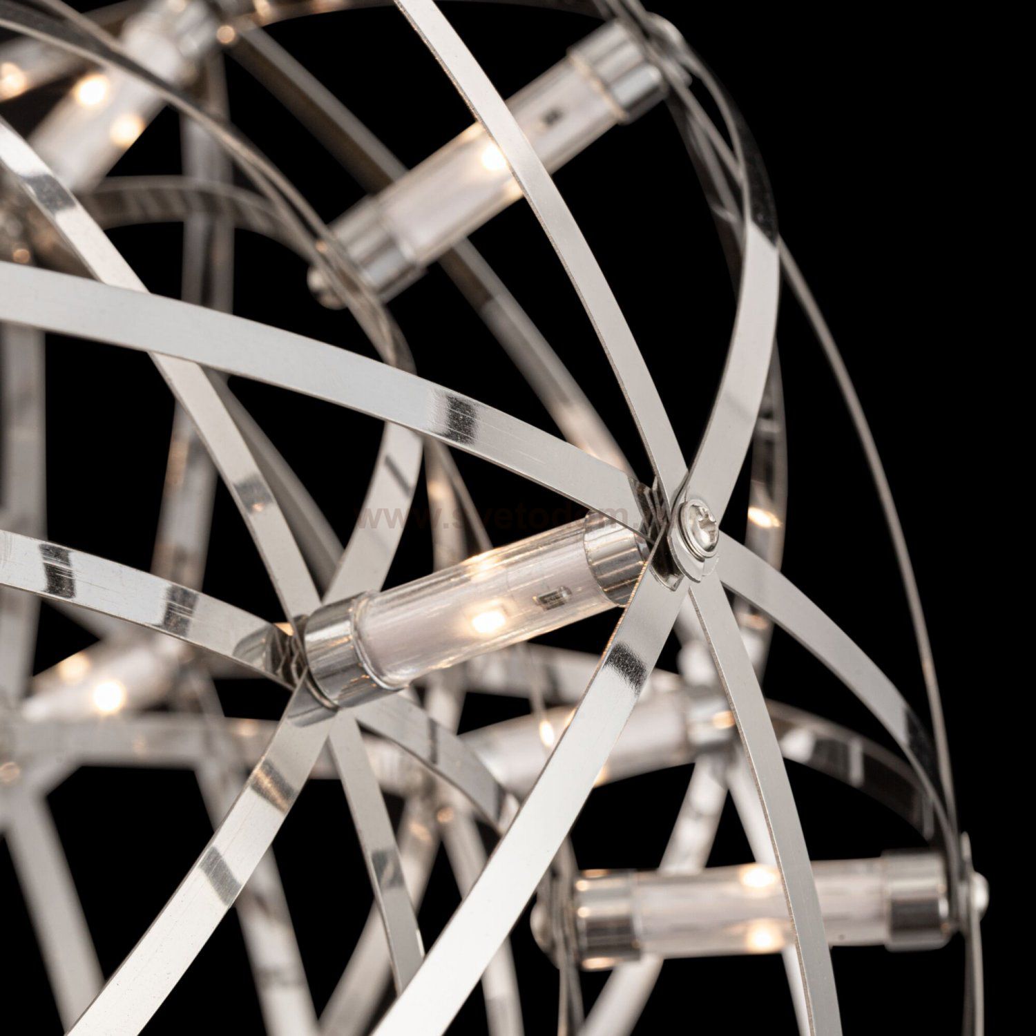 Серия Amber представляет воздушные светильники-сферы, выполненные в трендовом стиле хай-тек. Хромированная металлическая арматура и плафон, сотканный из переплетающихся лент, создают запоминающийся современный образ. Встроенные светодиоды экономят электроэнергию и красиво подсвечивают сферу. В выключенном состоянии светильник выглядит как абстрактное произведение искусства и является полноправной частью декоративного ансамбля интерьера. Серию составляют подвесы различного диаметра – их можно использовать по отдельности, а можно комбинировать в группы. Для обстановки в стиле хай-тек, минимализм, лофт, помещений кафе и ресторанов светильник станет идеальным решением.