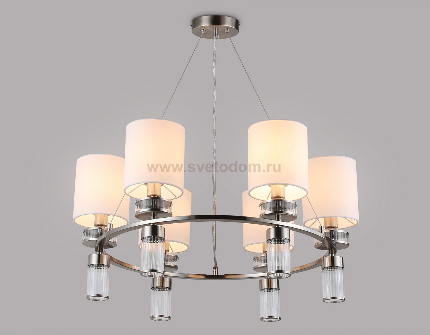 Подвесная люстра с абажурами из коллекции HIGH LIGHT. Модель LH71291 представлена в классическом стиле. Люстра выполнена из тканевых плафонов белого цвета, каркас изготовлен из металла цвета никель. Для данной модели подойдут лампы с цоколем Е14. Люстра будет прекрасным дополнением в любом помещении.