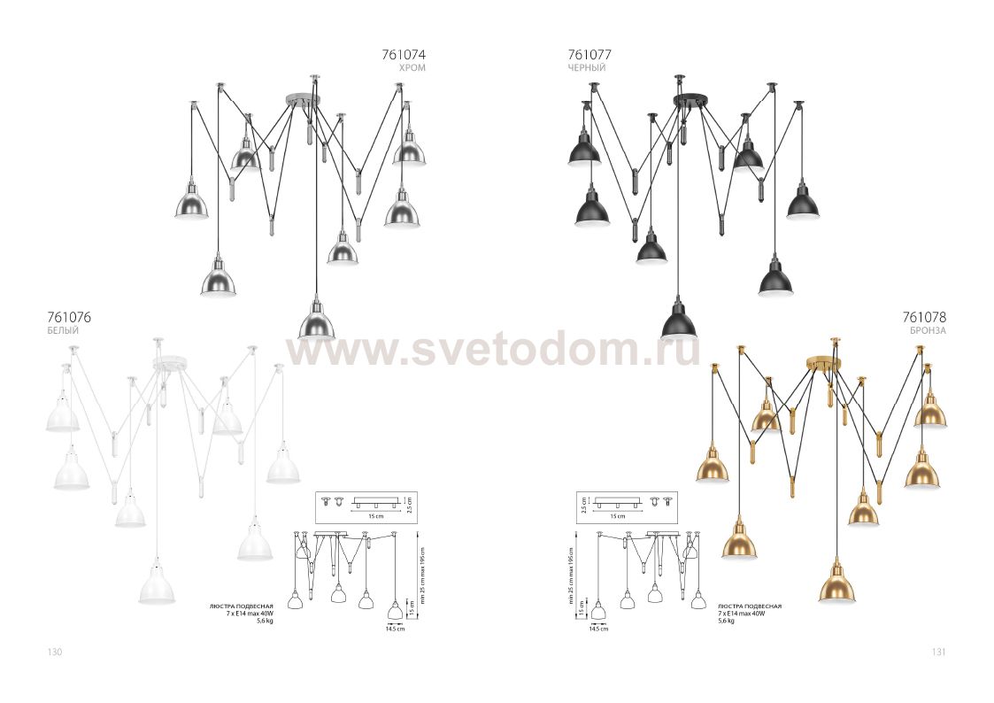 <Высота min-max (см): 25-195; Ширина (см): ; Вес (кг): 5,6; Кол-во ламп: 7xE14; Мощность max (W): 40; Цвет основания/цвет стекла или абажура: Bronze;