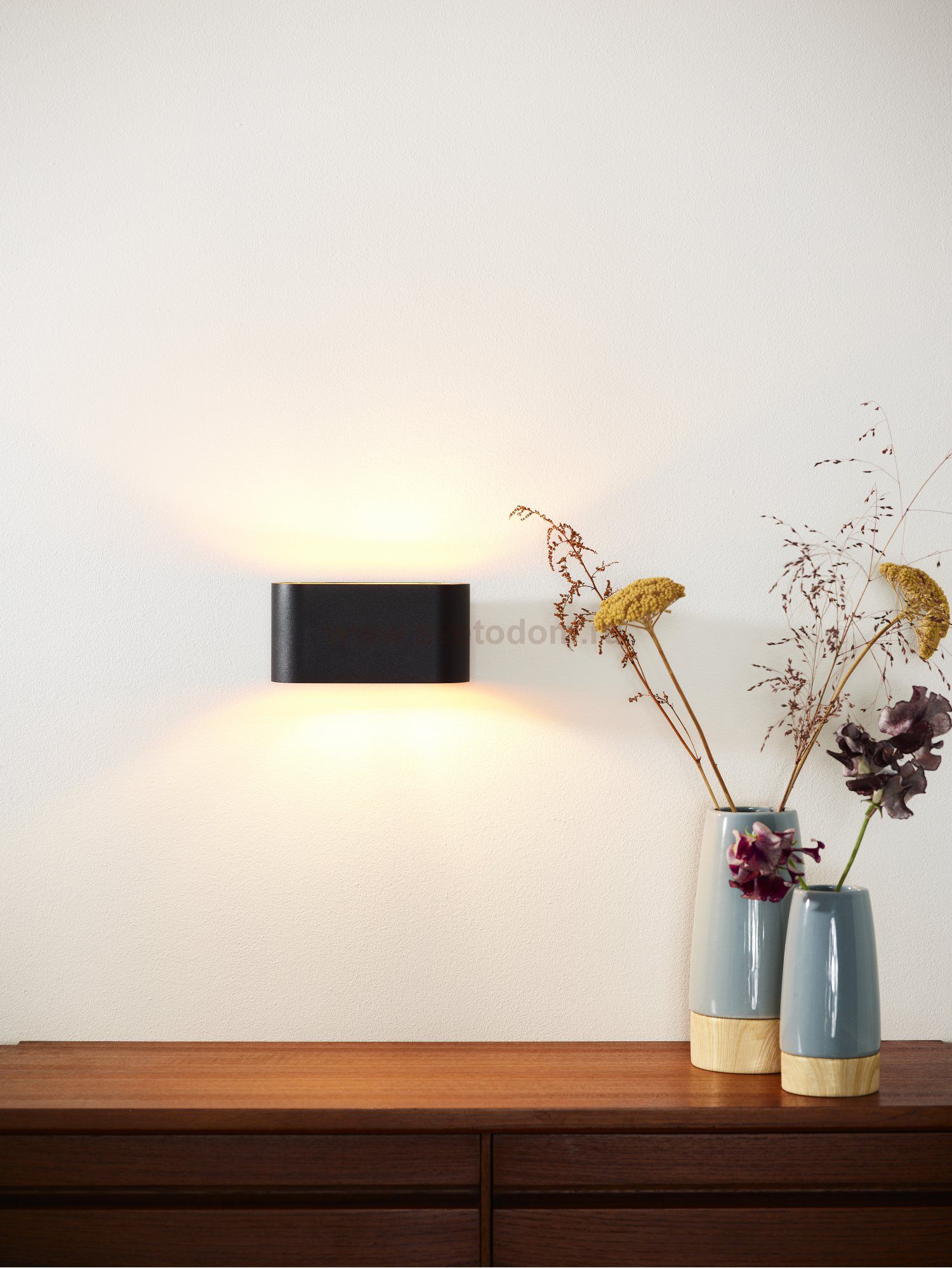 Looking for a unique accessory for extra atmosphere in a living space, entrance or bedroom? This wall lamp Xera meets all your needs. With a luxurious golden interior, this wall lamp distributes a very pleasant and warm light. The black exterior gives the lamp a modern and even industrial look. Thanks to the wide openings on both sides of this lamp, Xera creates a big, wide light distribution. Ideal for illuminating a large wall.