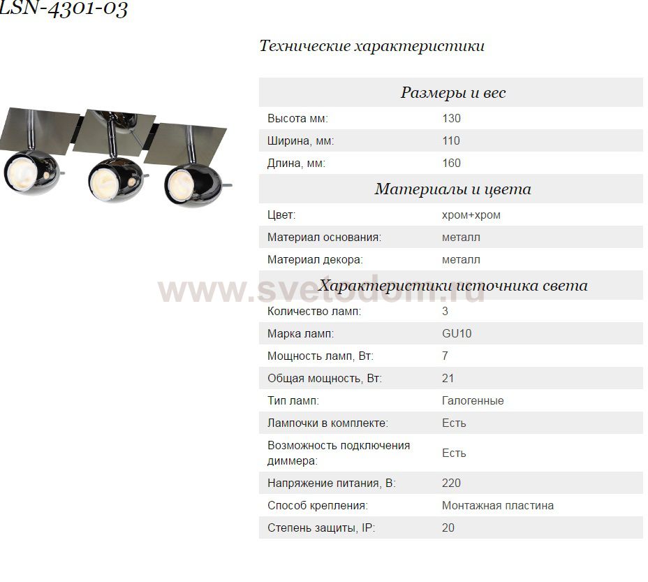 Купить светильник-спот Lussole LSN-4301-03 в нашем онлайн-магазине Вы можете либо с помощью формы на сайте, либо по указанным выше телефонам. Обратите внимание, что у нас склады не только в Москве и Екатеринбурге, но и других городах России.