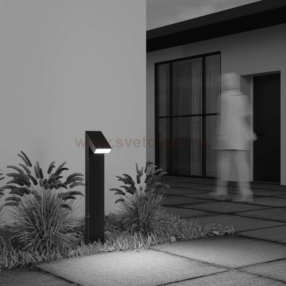 Материал корпуса - алюминий, цвет - графит. Оригинальный дизайн корпуса - акцентный элемент ландшафтного дизайна. LED-источник света, цветовая температура - 3000К. Высокая степень защиты - IP65.
