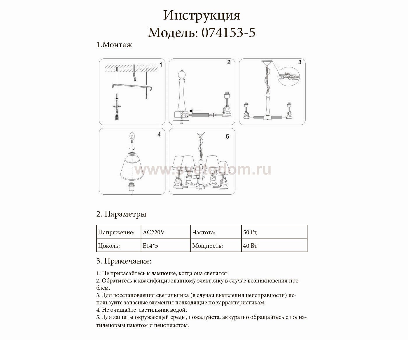 Если Вы настоены купить модель Kink light 074153-5 Люстра Единорог розовая w75*75 h90 E27 5*40W, то советуем для начала ознакомиться с техническими характеристиками.