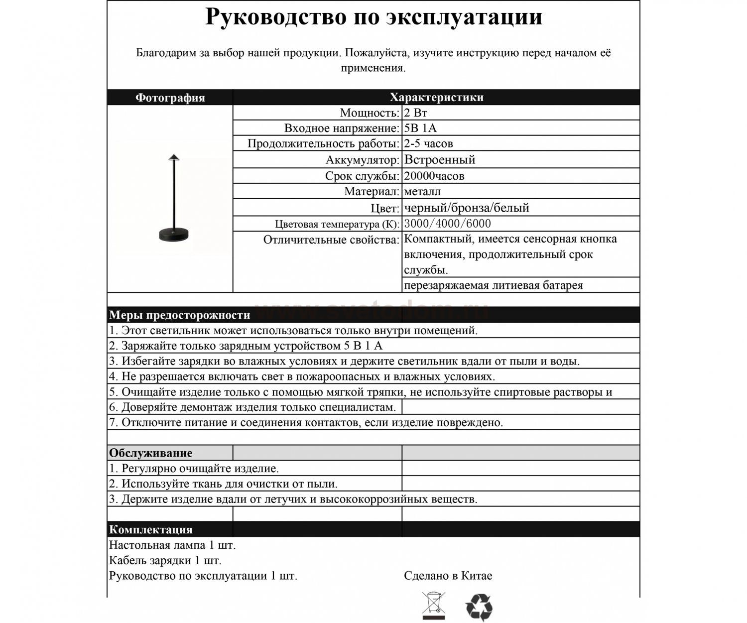 Настольные лампы Артикул производителя