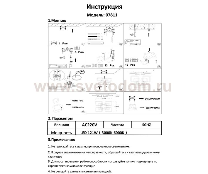Если Вы настоены купить модель Kink light 07811 Светильник диммируемый Квадро белый w68*68 h13 Led 121W (3000K-6000К) с пультом ДУ, то советуем для начала ознакомиться с техническими характеристиками.