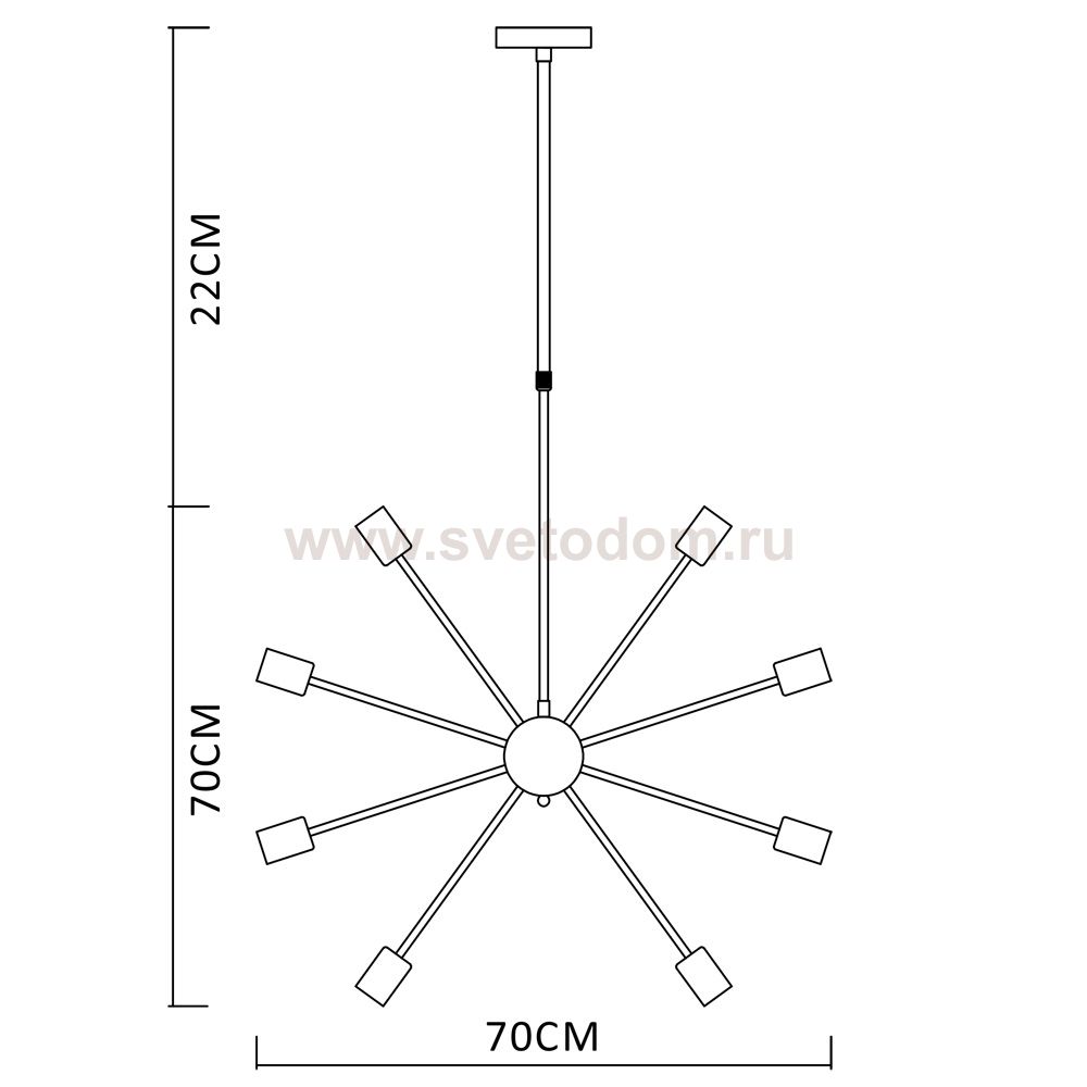 Характеризует подвесную систему светильника. Данную длину возможно изменять: дополнять или сокращать в пределах указанных данных.
