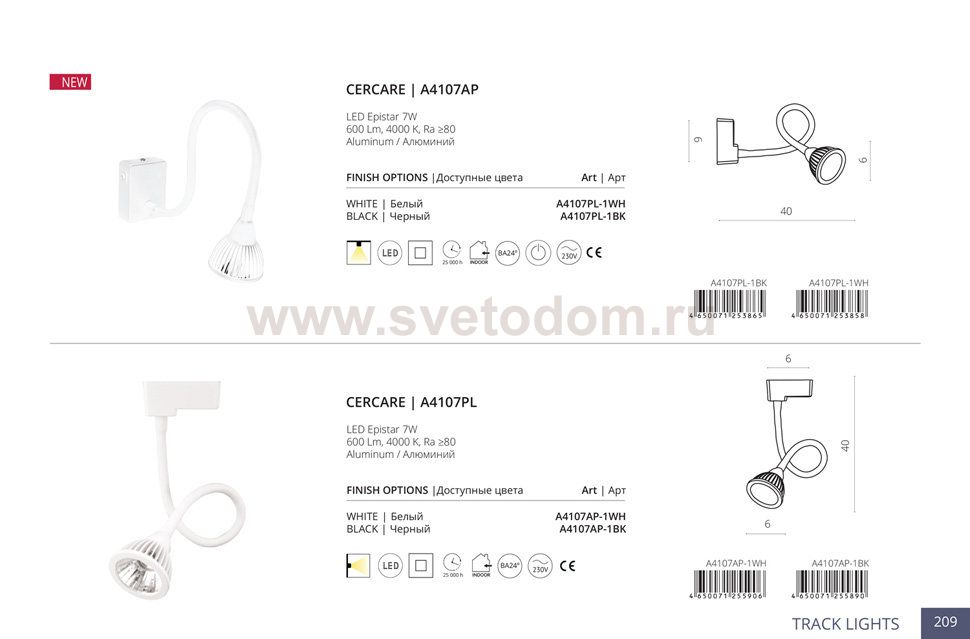 Светильник трековый белый Arte lamp A4107PL-1WH TRACK сделает Ваш интерьер современным, стильным и запоминающимся! Наиболее функционально и эстетически привлекательно модель будет смотреться в гостиной, зале, холле или другой комнате. А в комплекте с люстрой и торшером из этой же коллекции сделает интерьер по-дизайнерски профессиональным и законченным.