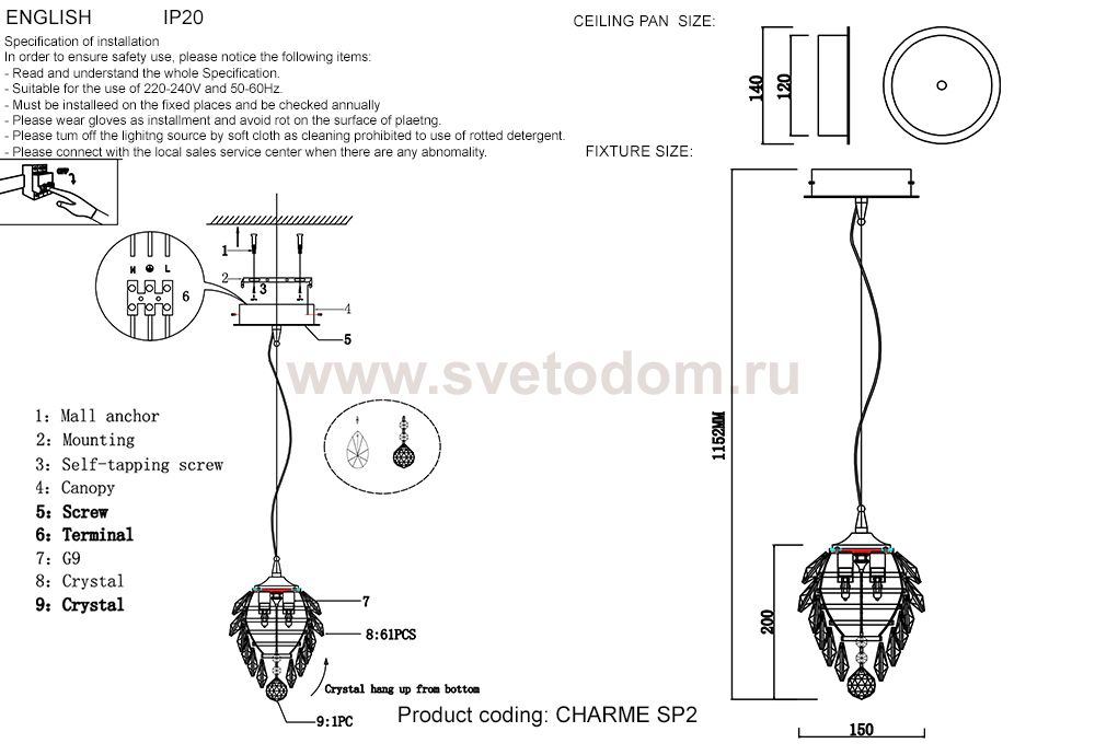 Характеризует подвесную систему светильника. Данную длину возможно изменять: дополнять или сокращать в пределах указанных данных.