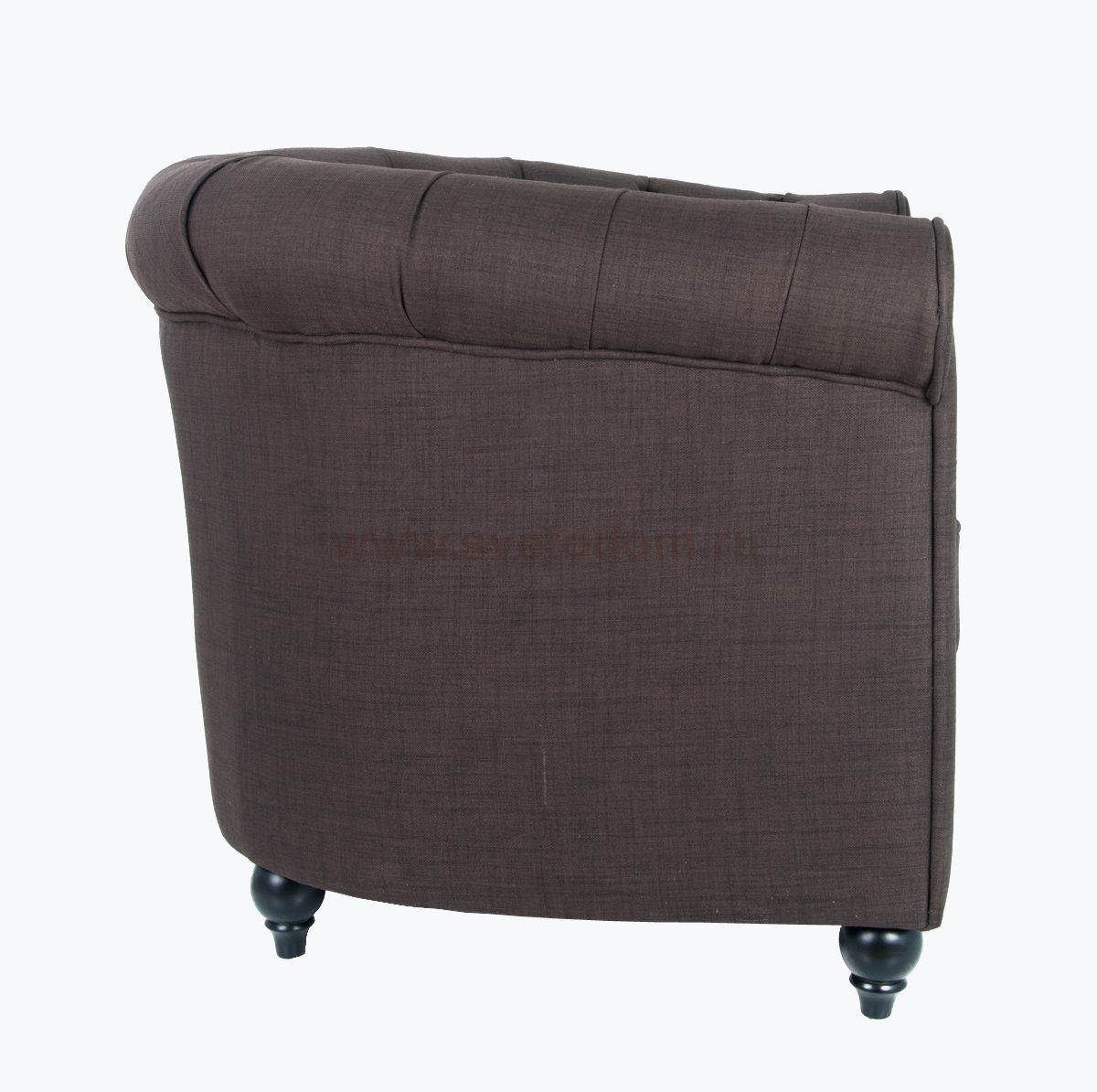 Кресло Nala brown коричневого цвета на коротких фигурных ножках, для комфортного отдыха в гостиной, спальне или рабочем кабинете. Мягкая обивка из натурального льна безопасна для здоровья и приятна на ощупь. Низкая закругленная спинка переходит в подлокотники, ее внутреннюю часть эффектно украшает объемная каретная стяжка на пуговицах.