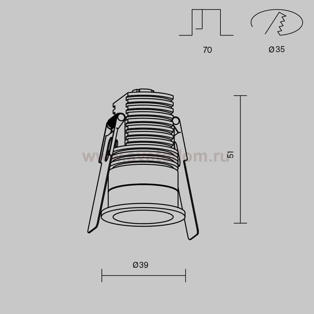 Данный размер указывает какое отверстие необходимо сделать для правильного монтажа. Зачастую светильники выбирают после ремонта и сделанных монтажных отверстий, тогда подбор осуществляется строго в размер +/- 2-5мм.