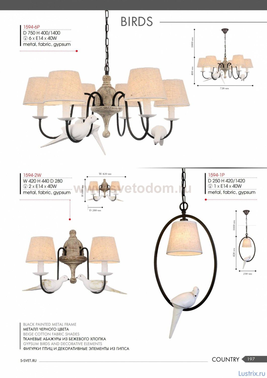 металл черного цвета, абажуры из ткани типа рогожка, декоративные элементы из гипса Штрих-код