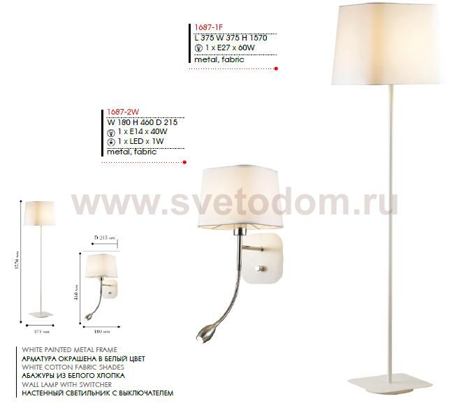 металл белого цвета и хром, абажур из белой ткани Комментарий