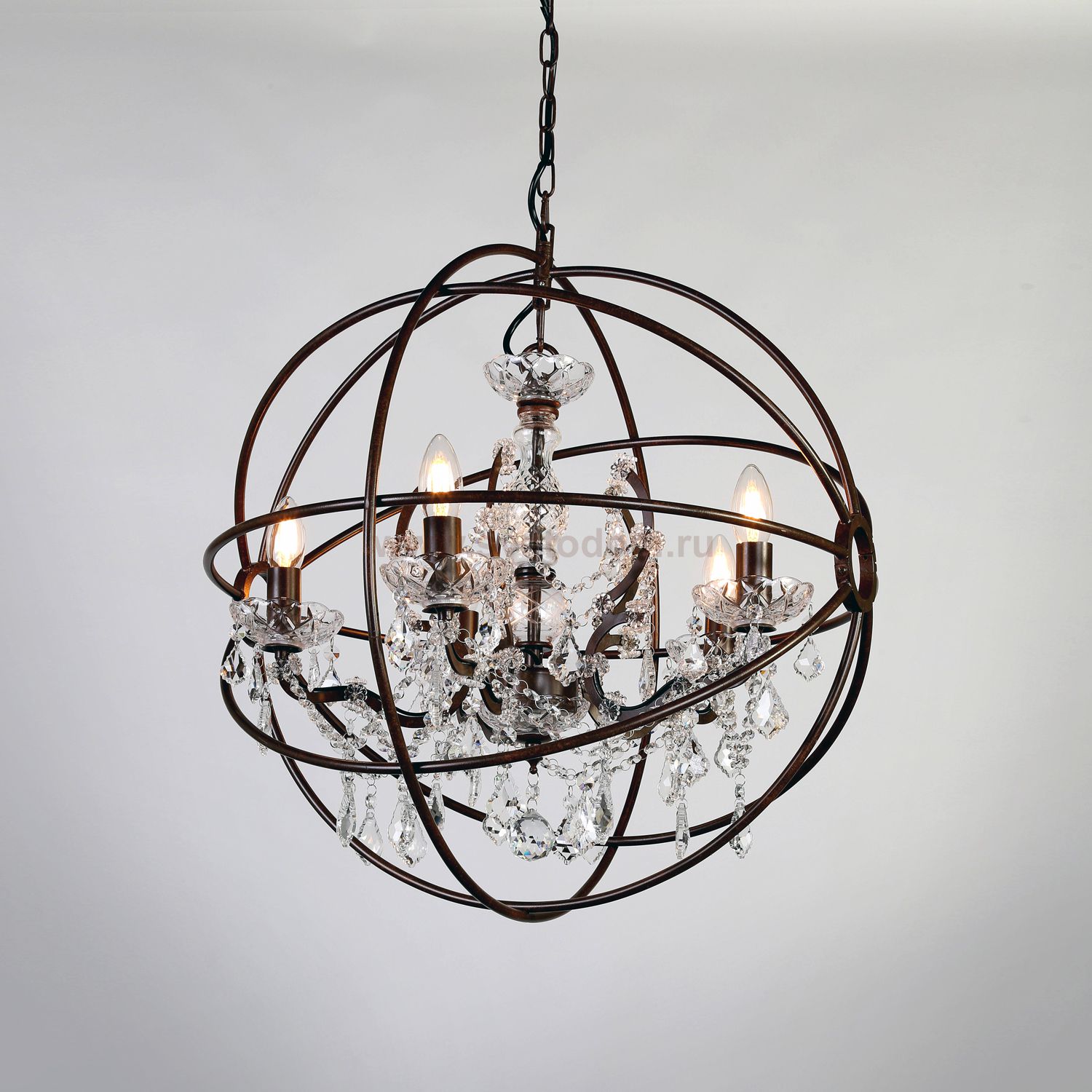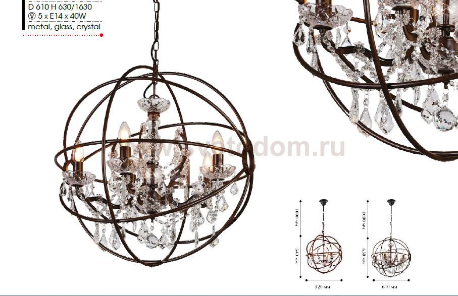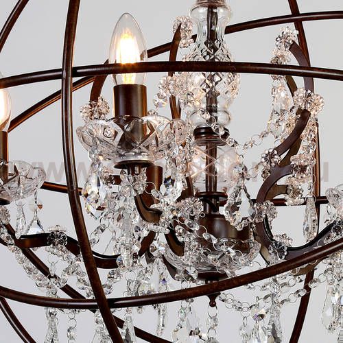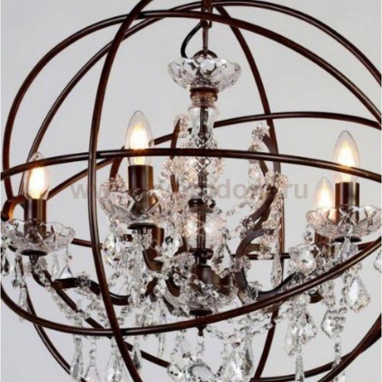 темно-коричневый каркас, стеклянные рожки и блюдца, хрусталь высшего качества Материал плафона