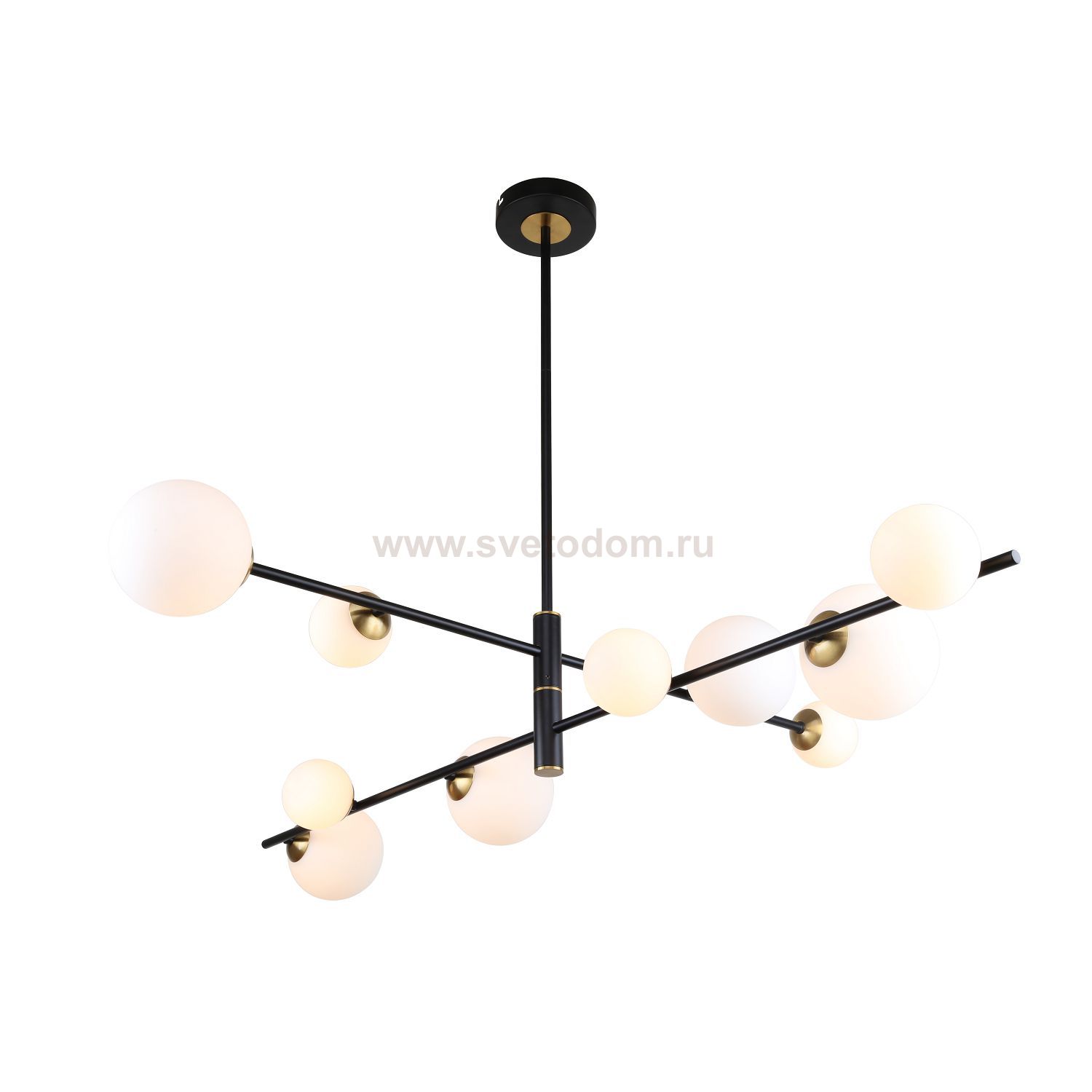 черный каркас с декоративными элементами цвета латуни, плафоны из белого стекла, лампу G9 можно менять Серия