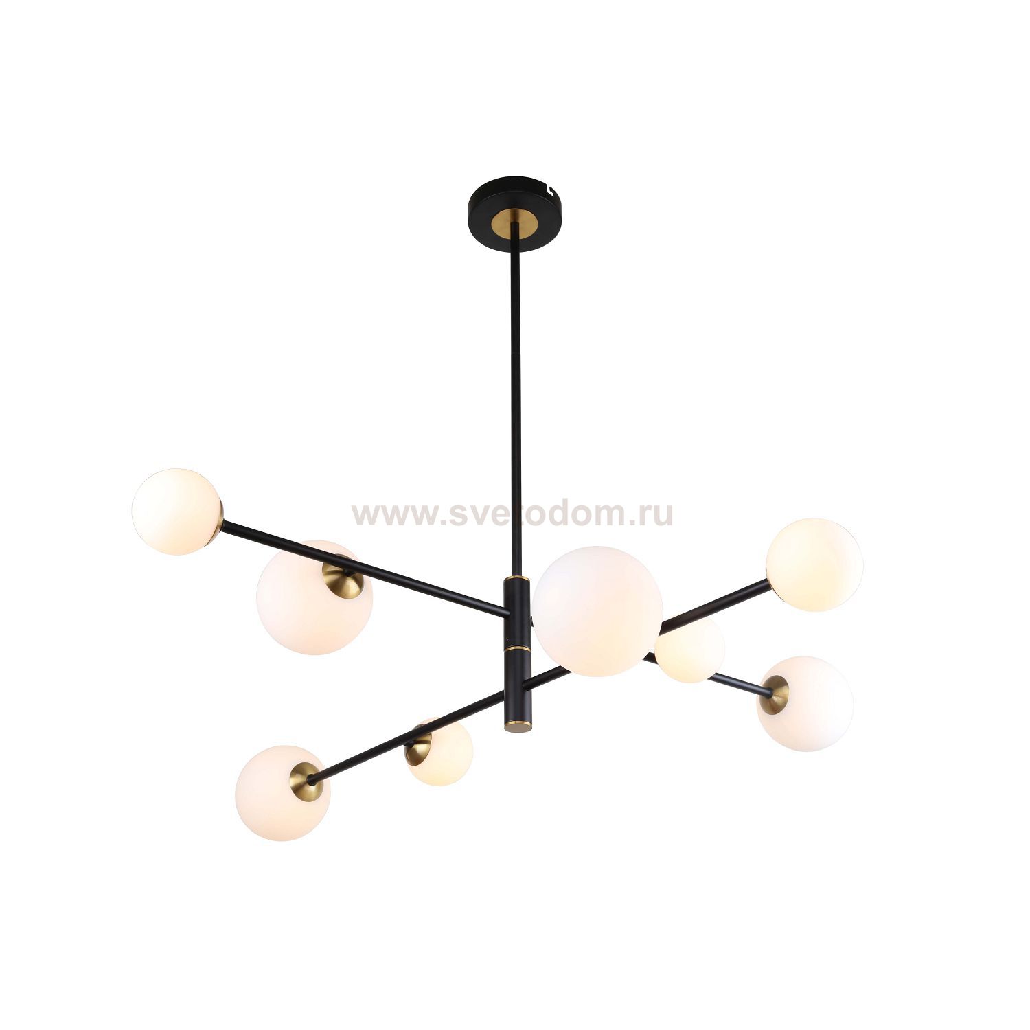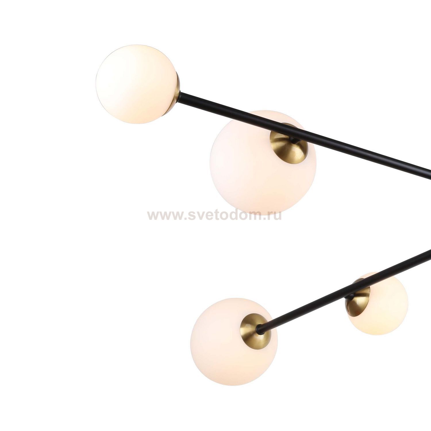 черный каркас с декоративными элементами цвета латуни, плафоны из белого стекла, лампу G9 можно менять Серия