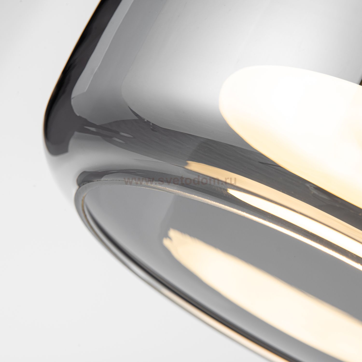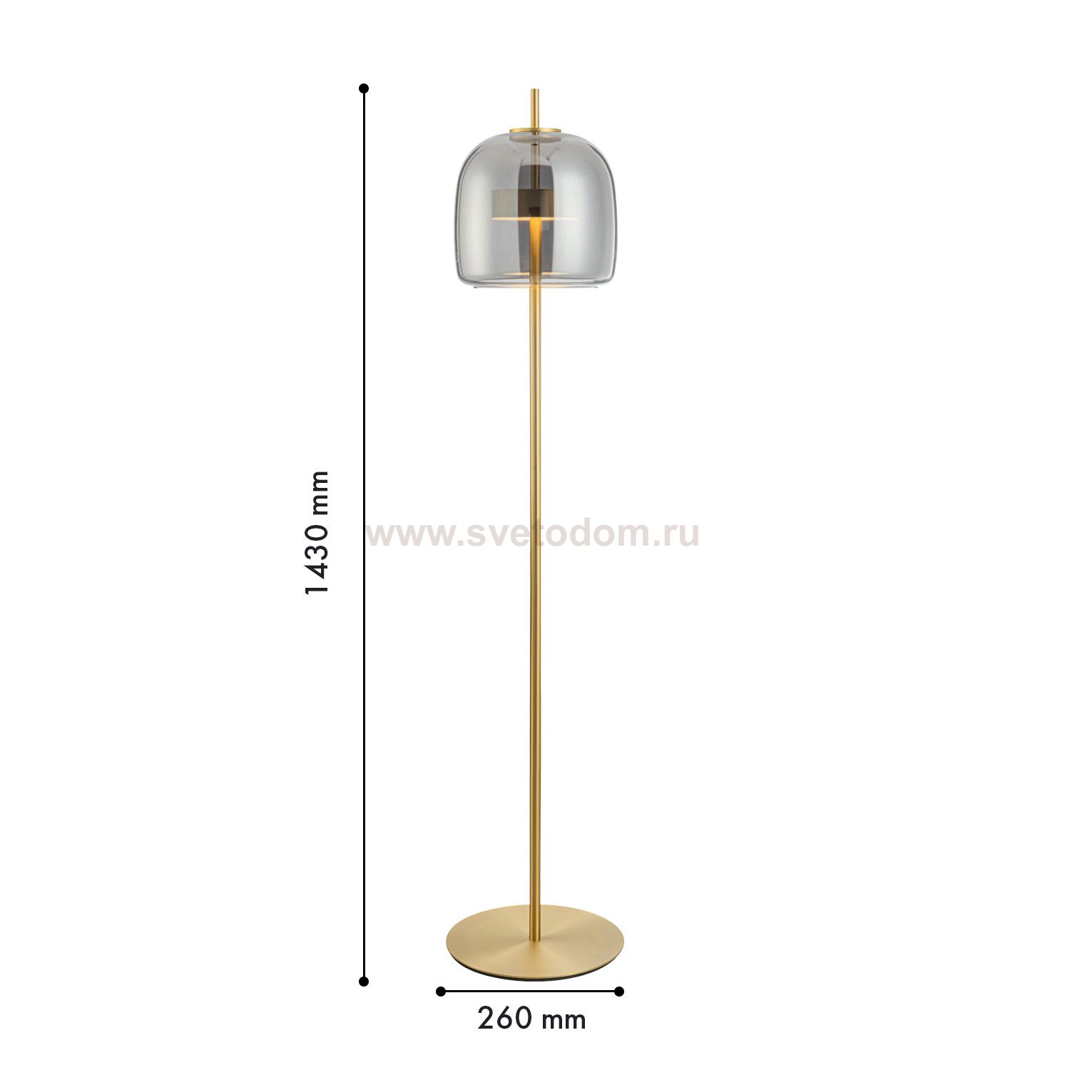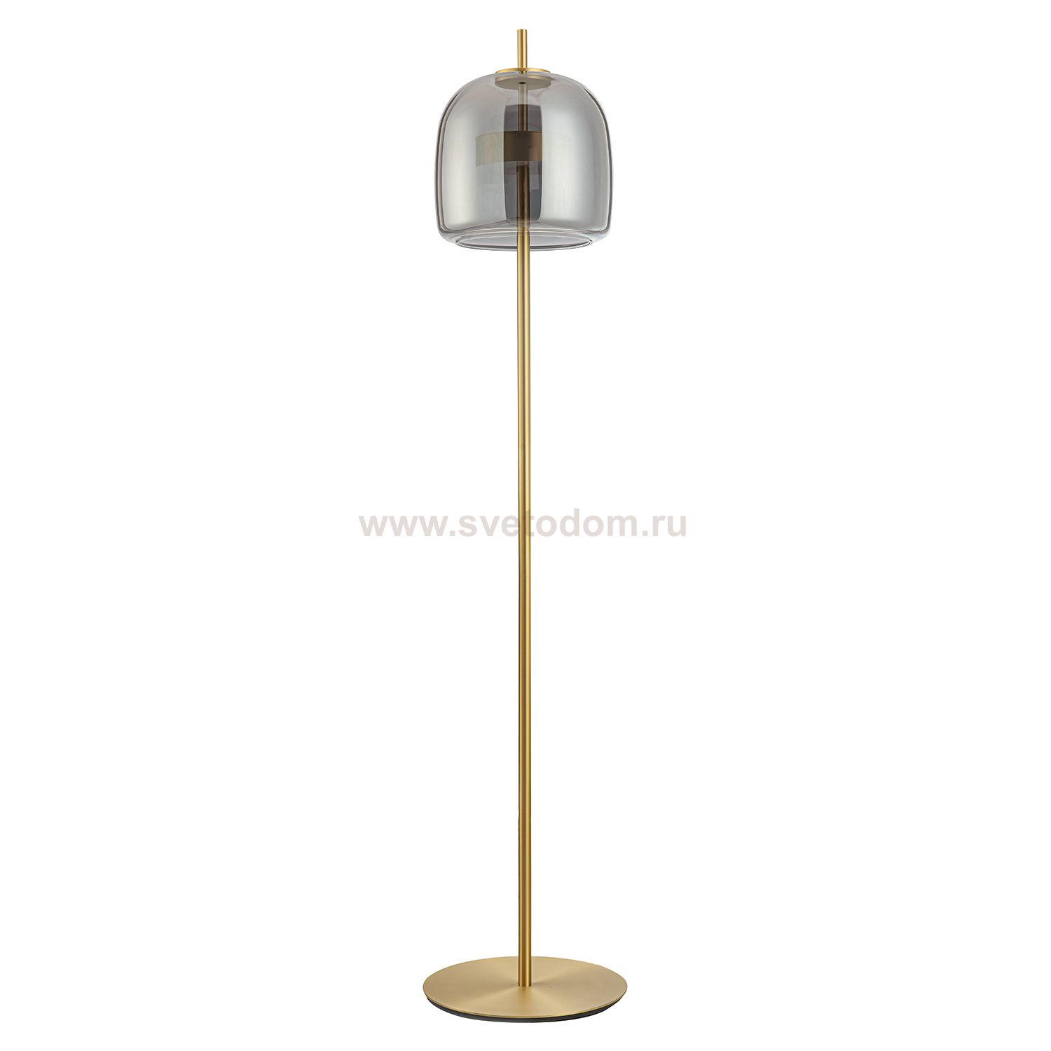 Торшер с каркасом цвета золото, плафон из дымчато-серого выдувного стекла со встроенным модулем LED. Серия