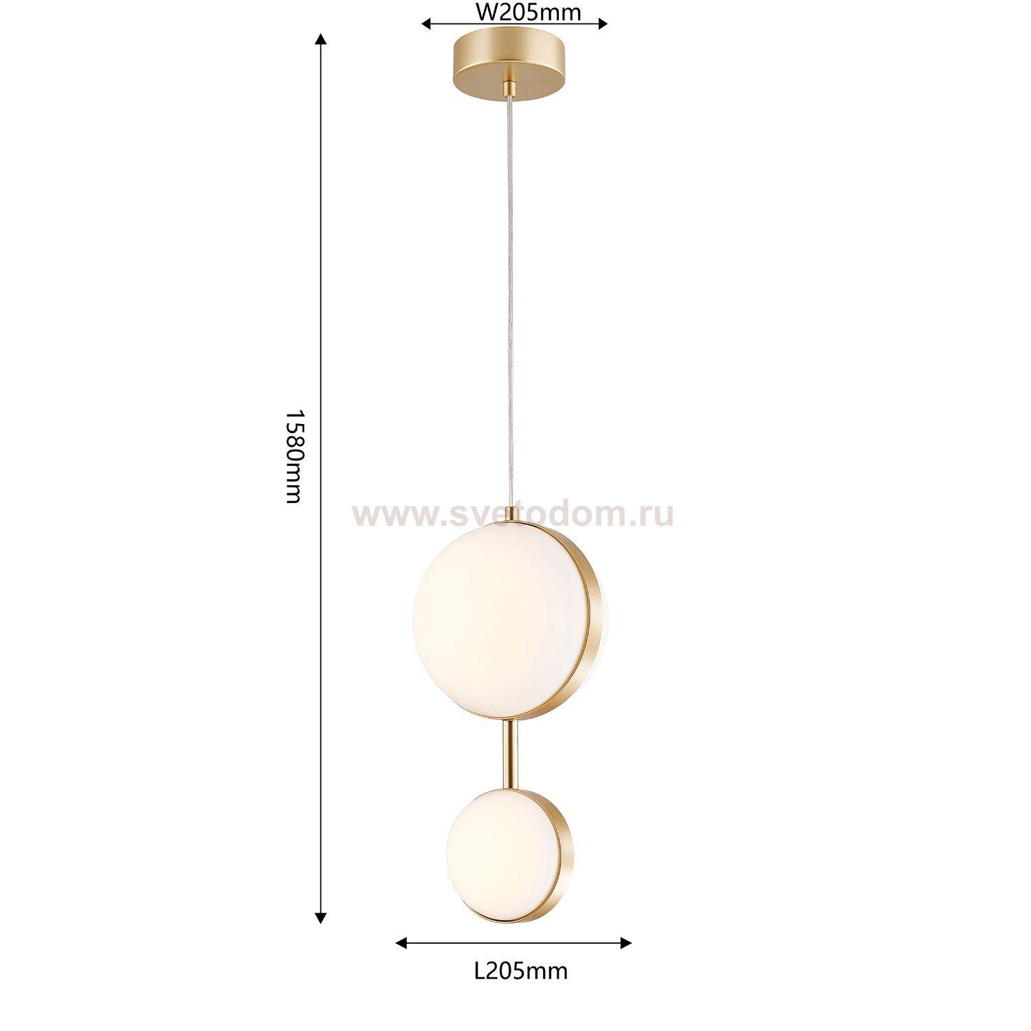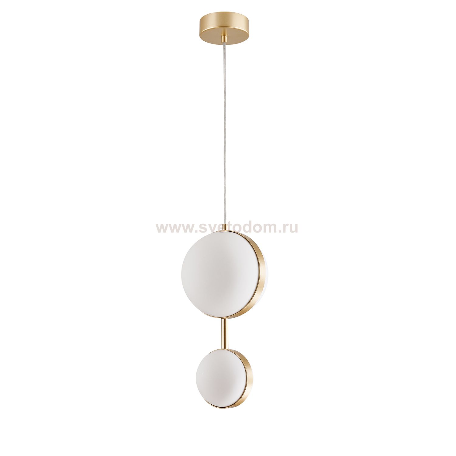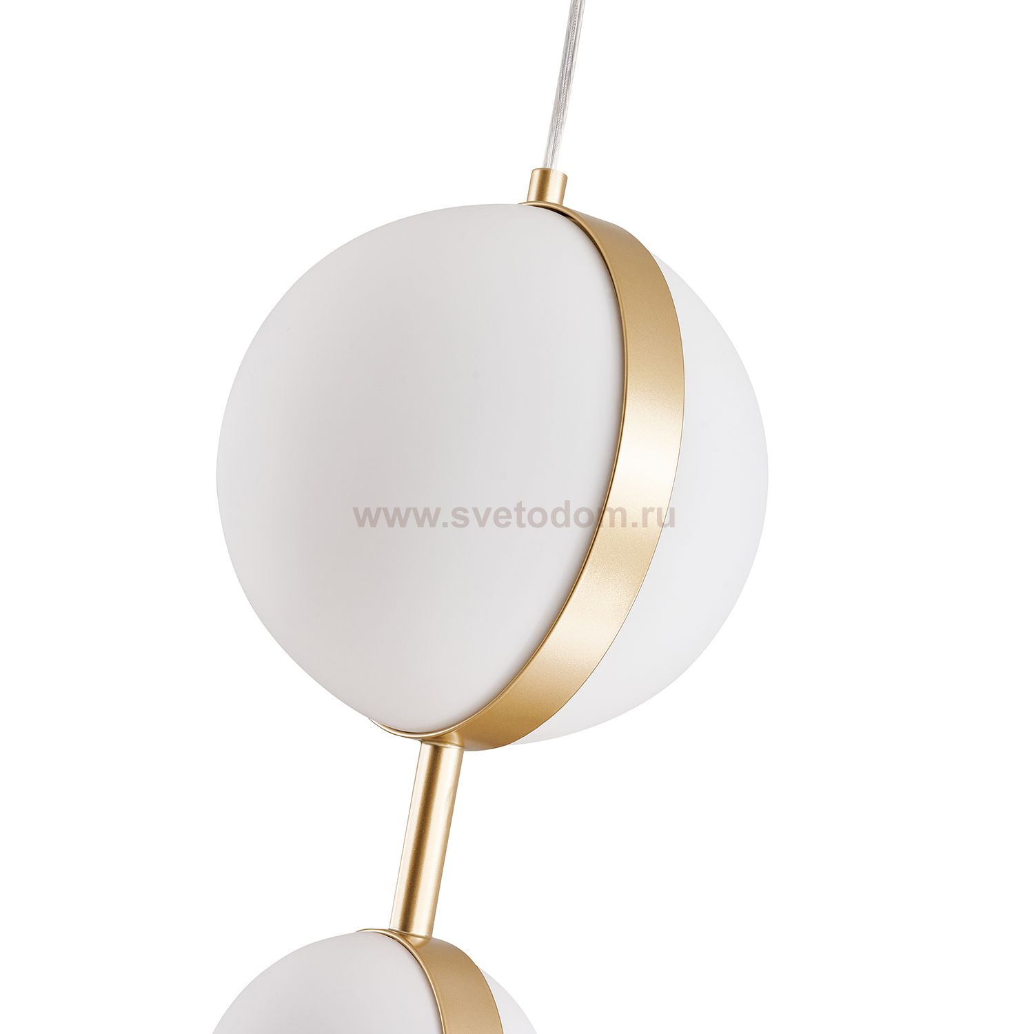 Подвес с каркасом в цвете матовое золото, с двумя шаровидными плафонами разных размеров, LED-лампы Серия
