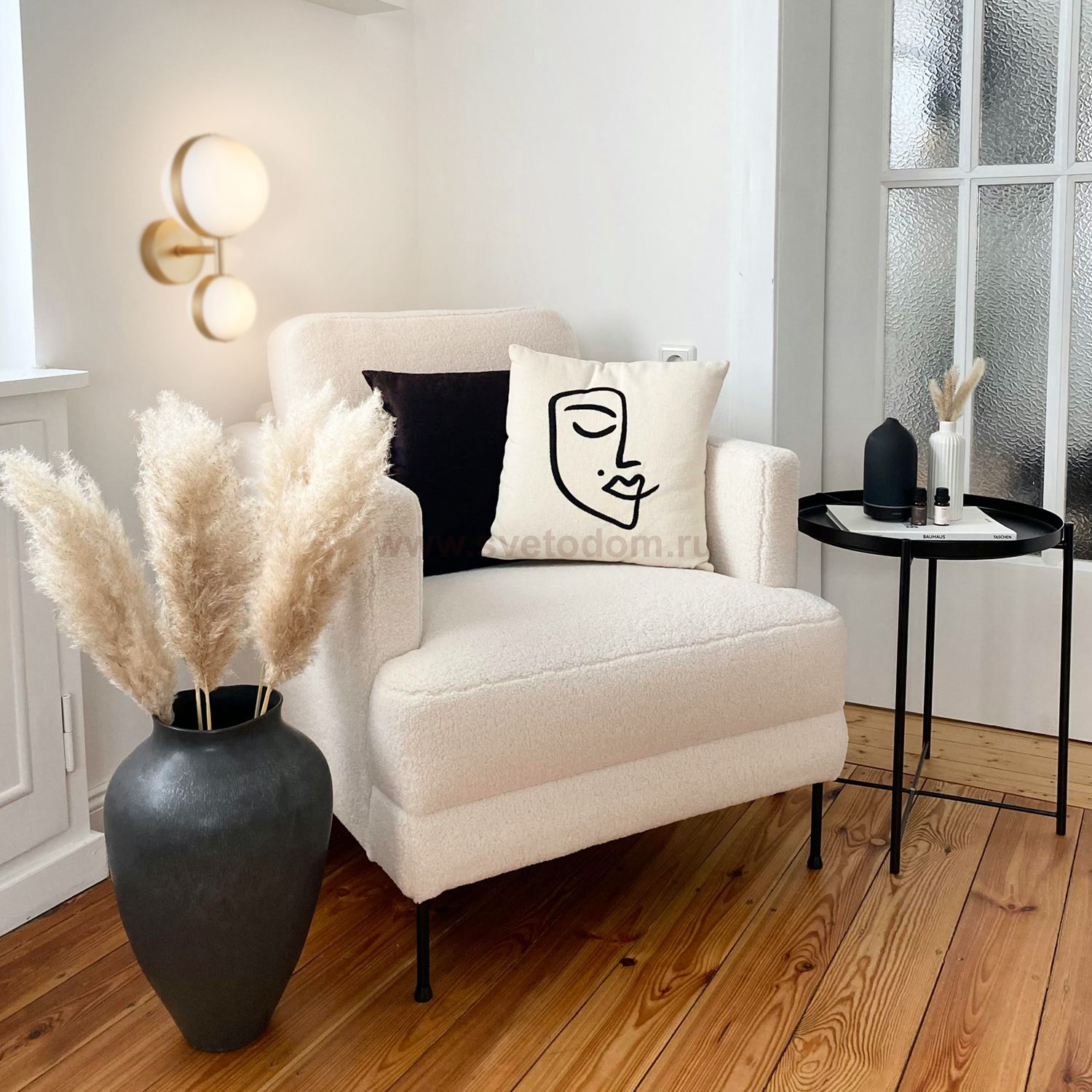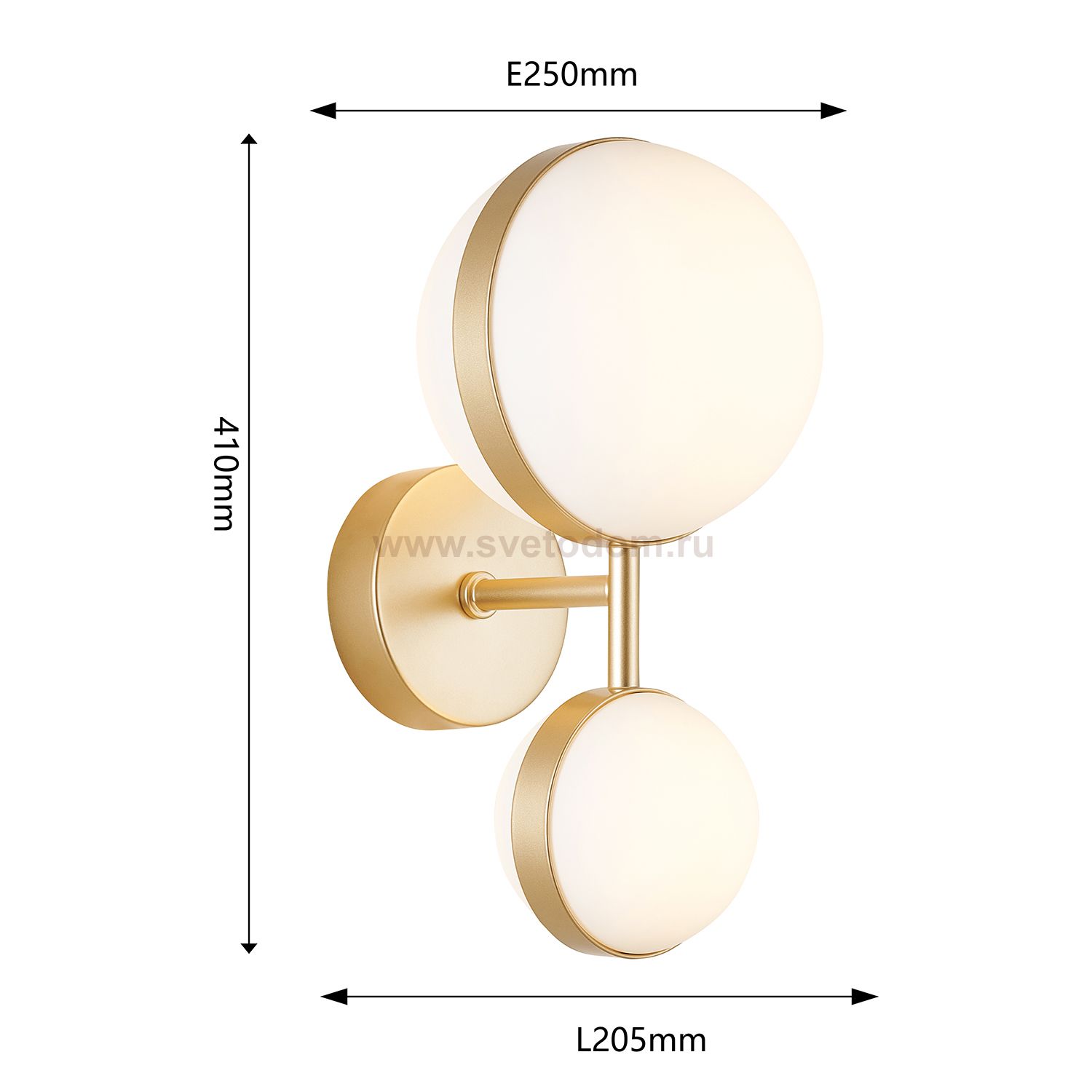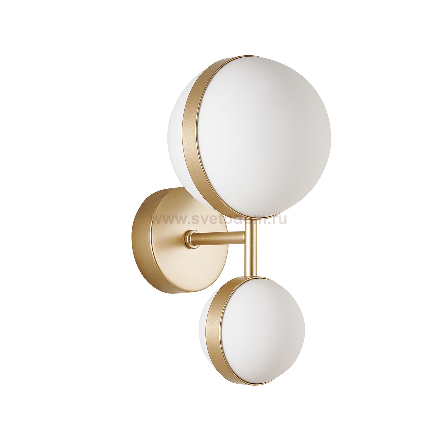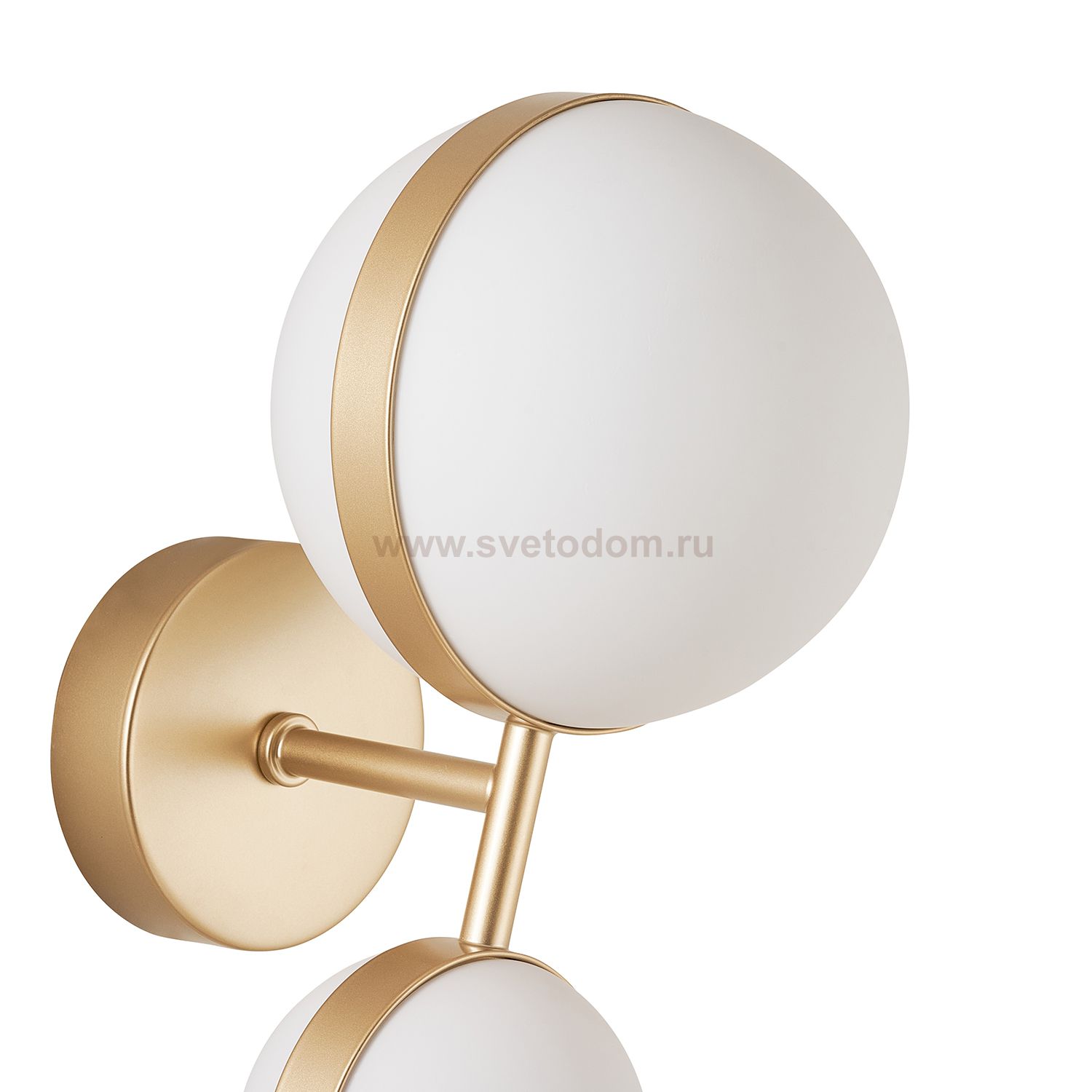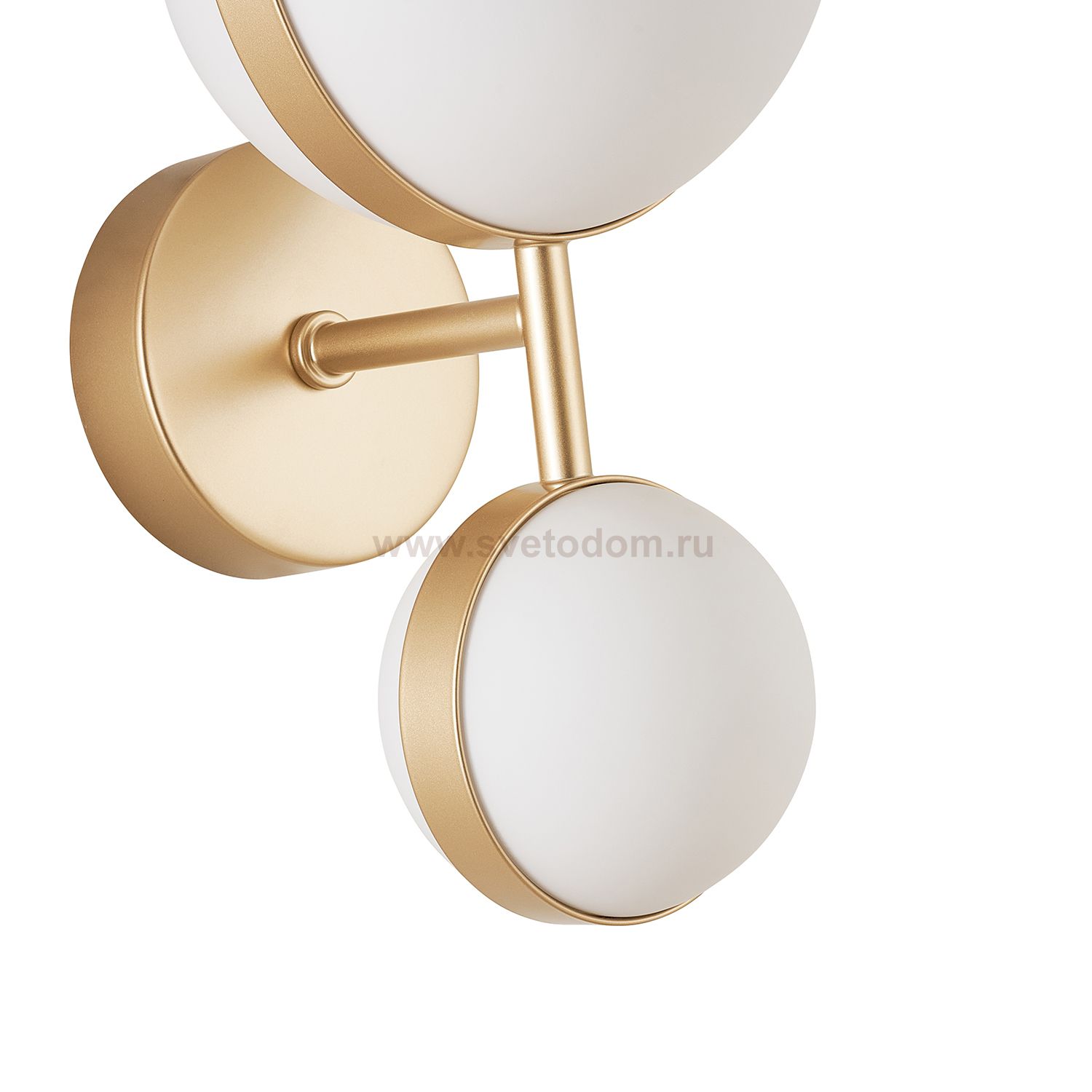 Настенный светильник с каркасом в цвете матовое золото, с двумя шаровидными плафонами разных размеров, LED-лампы Серия