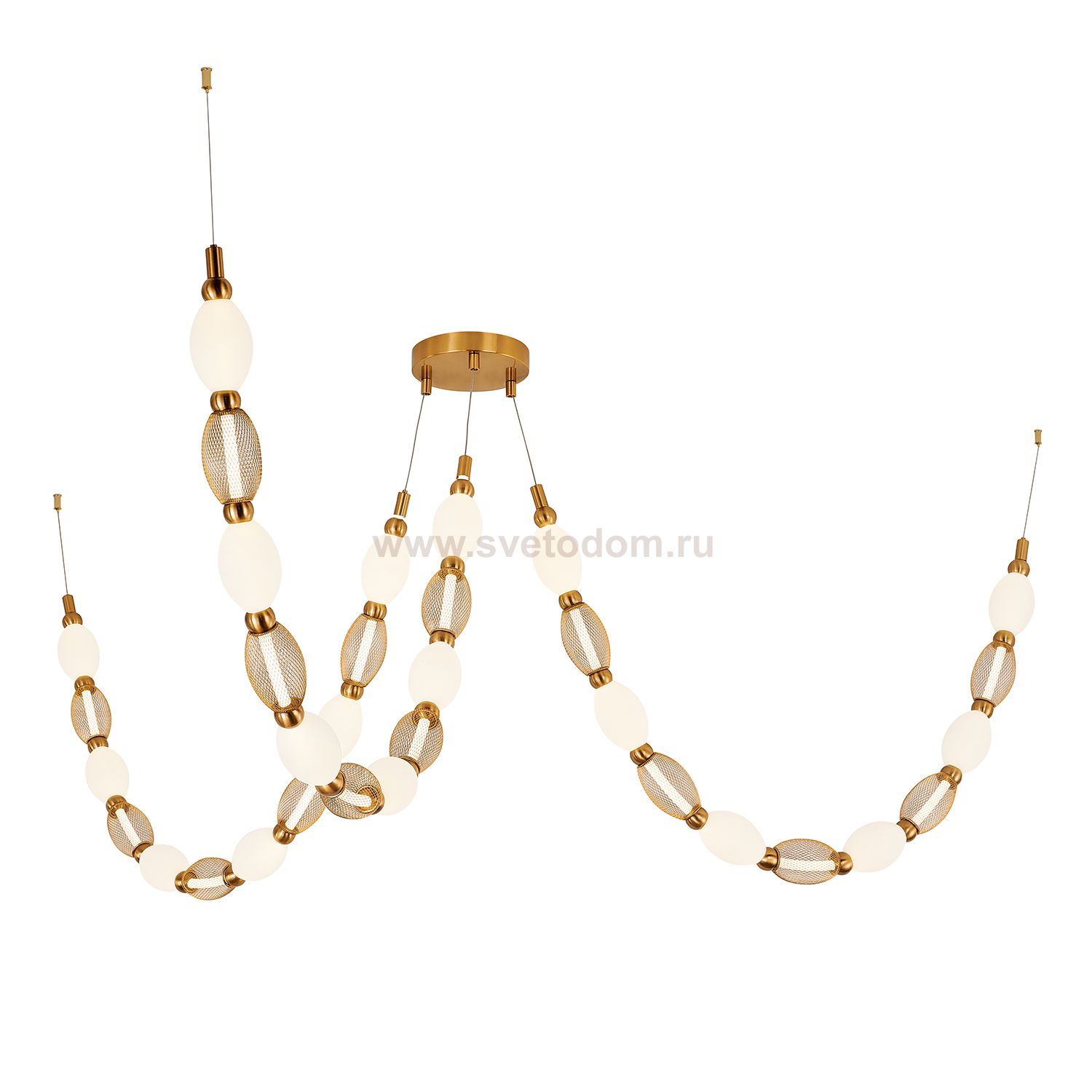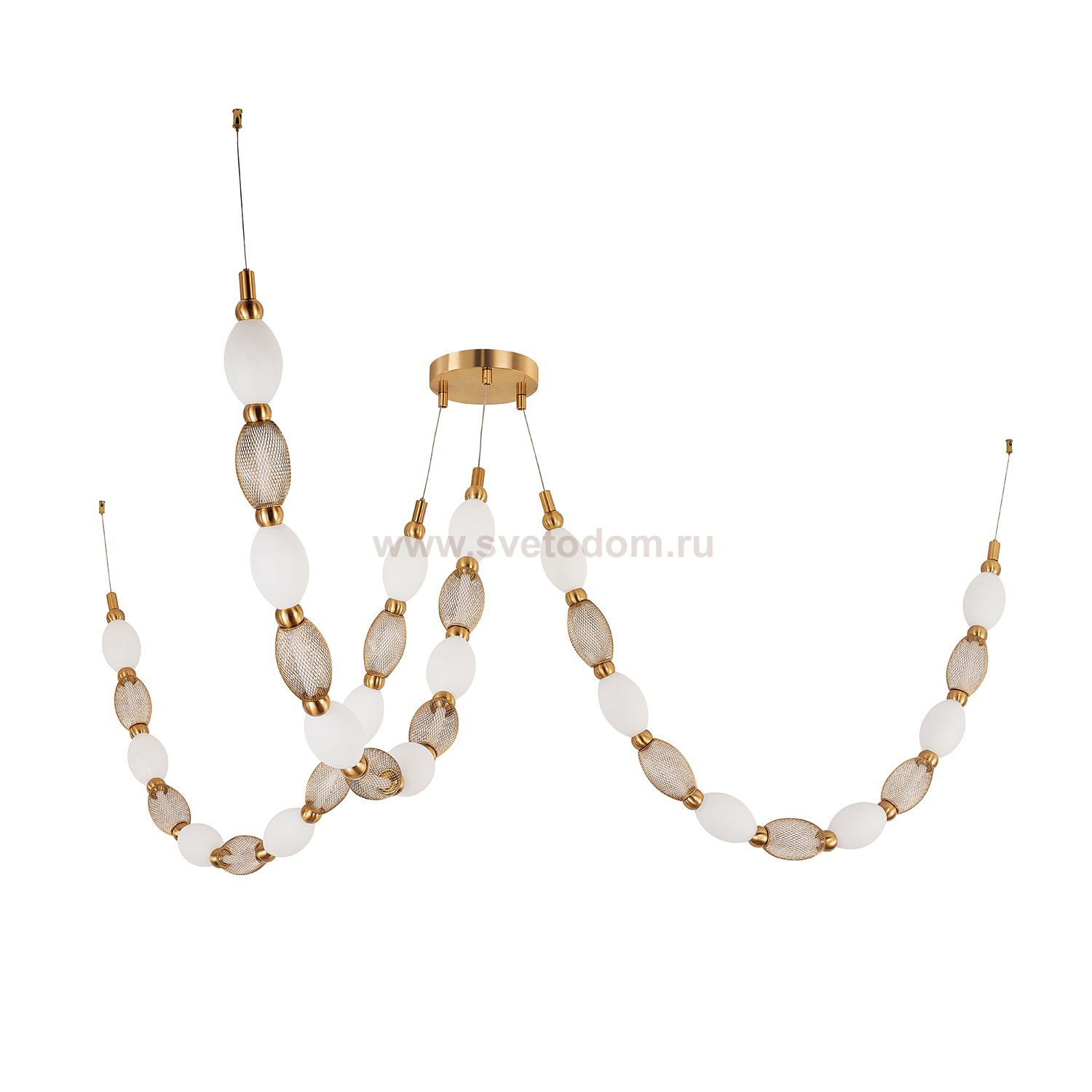 Основой конструкции служит гибкая силиконовая трубка со встроенной лентой LED. На эту трубку нанизаны плафоны из белого акрила и декоративной металлич Серия