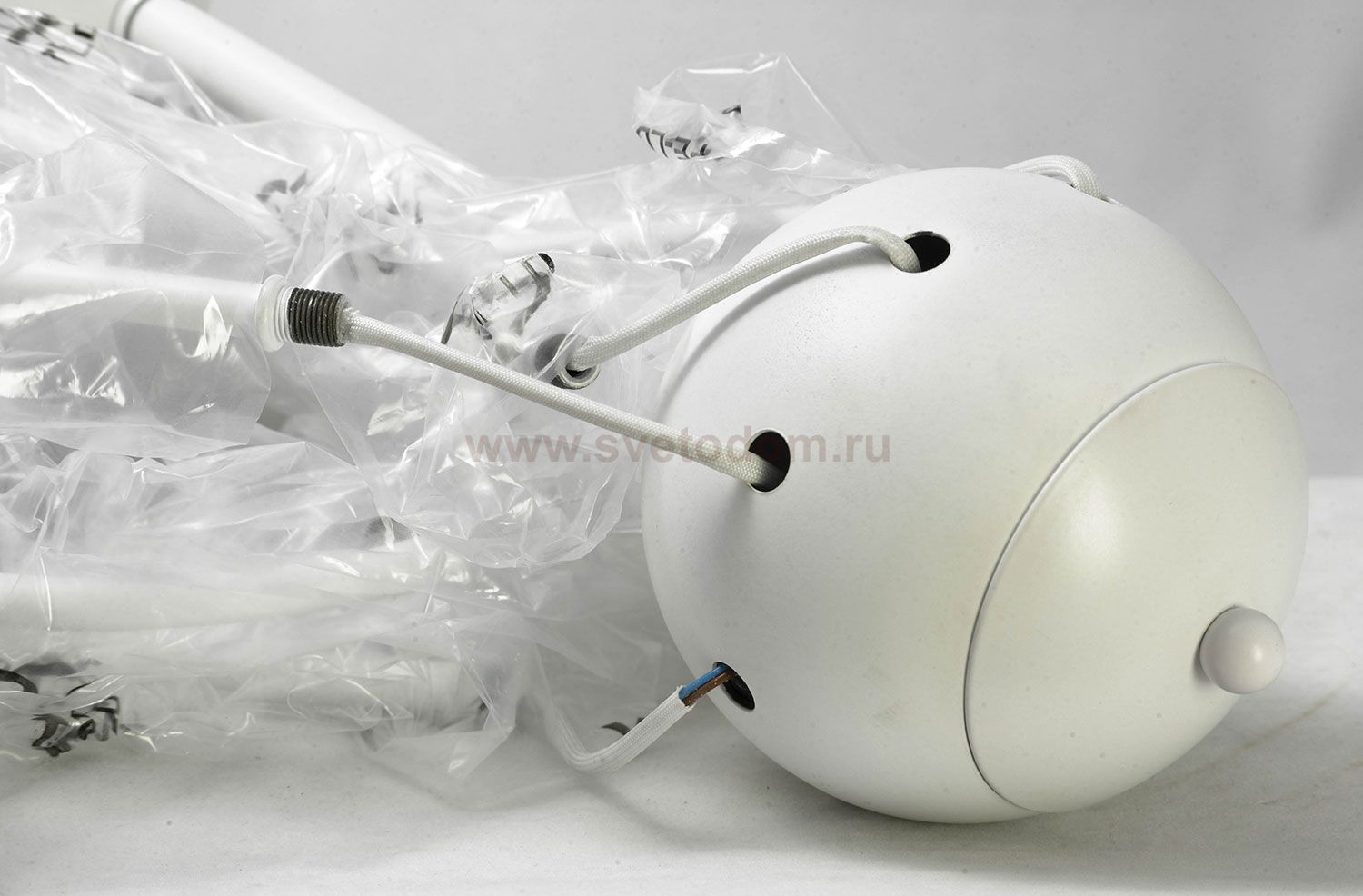 Подвесная белая люстра на 8 плафонов осветит достаточно большое помещение. Каркас металлический и окрашен в белый цвет, тканевые плафоны с фигурной ромбовидной сеткой позволяют проходить свету от ламп. Цепь в конструкции люстры поможет скорректировать высоту подвеса в зависимости от помещения.