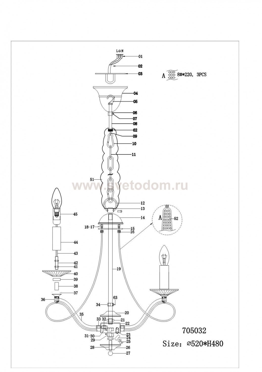 Максимальная потребляемая мощность лампы, которую можно использовать в люстре.