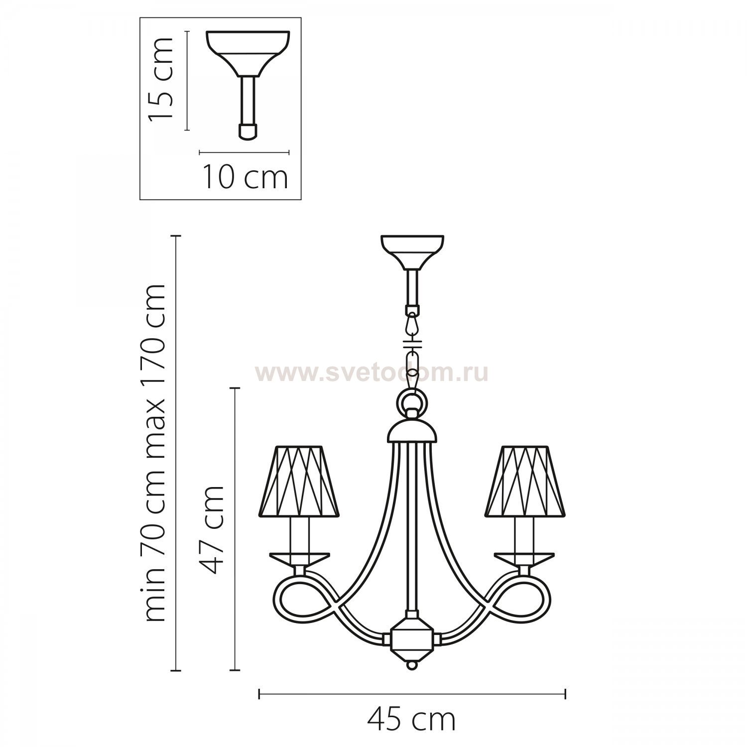 Высота min-max (см): 70-170; Ширина (см): 45; Вес (кг): 4,05; Кол-во ламп: 3xE14; Мощность max (W): 40; Цвет основания/цвет стекла или абажура: Gold/Cristal Clear;