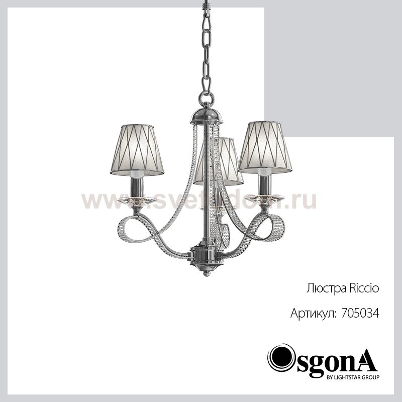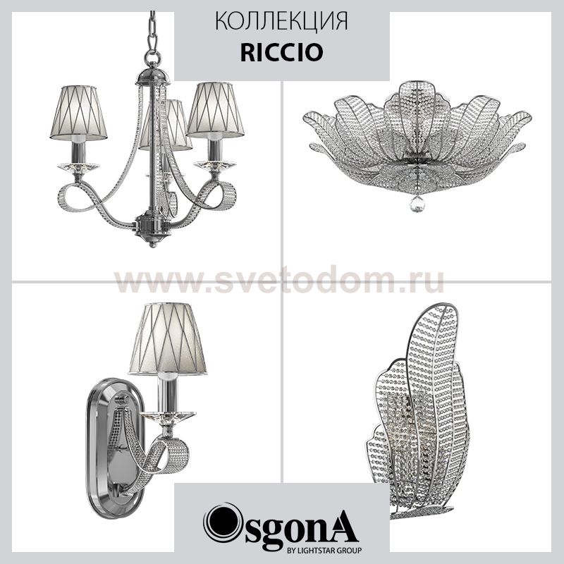 Коллекция Riccio относится к бренду премиальных светильников Osgona. Металлическое основание покрыто краской цвета «хром», которая не потемнеет и не испортится со временем. Светильники долгие годы будут радовать своим зеркальным блеском. Серия отличается множеством хрустальных украшений, которые либо полностью покрывают поверхность светильника, либо являются одним из эстетических элементов. В любом случае качественная огранка каждого хрусталика удивит яркими переливами. Плафоны выполнены из матового венецианского стекла с узором из хромированного металла. В коллекцию вошли: 2 потолочные люстры и 2 бра.