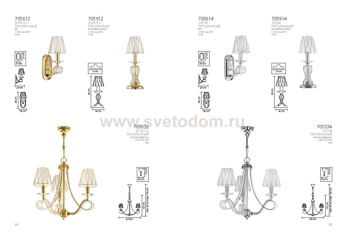 Высота min-max (см): 38; Ширина (см): 14; Вес (кг): 1,65; Кол-во ламп: 1; Мощность max (W): 40; Цвет основания/цвет стекла или абажура: Gold/Cristal Clear; Штрих-код