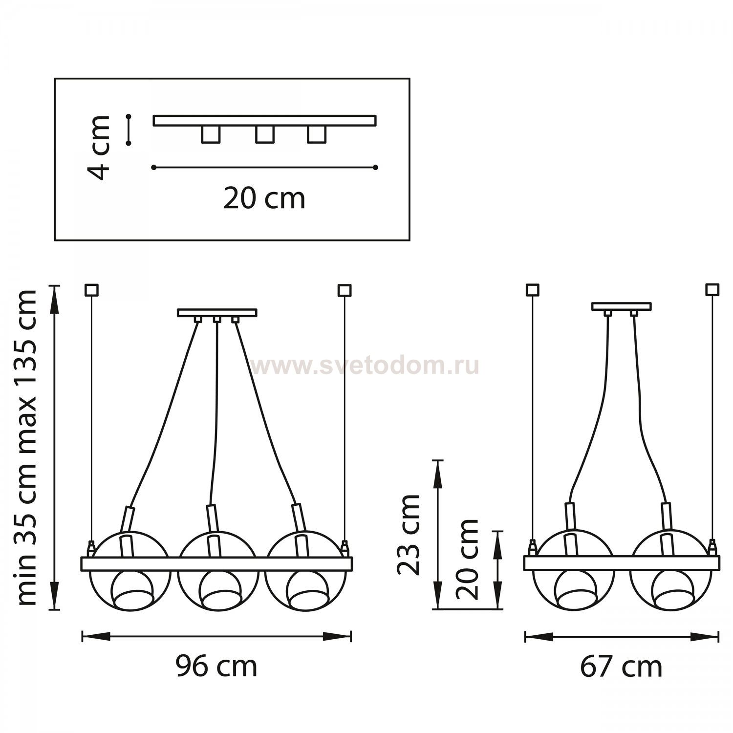 Высота min-max (см): 35-135; Ширина (см): 96*67; Вес (кг): 7,5; Кол-во ламп: 6xE14; Мощность max (W): 40; Цвет основания/цвет стекла или абажура: Chrome / White;