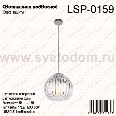 Прозрачный рифленый подвес шарообразной формы изготовлен из светлого прозрачного акрила. Свет проходящий сквозь оребрение основной части создает ровный орнамент на попадающихся на его пути предметах.