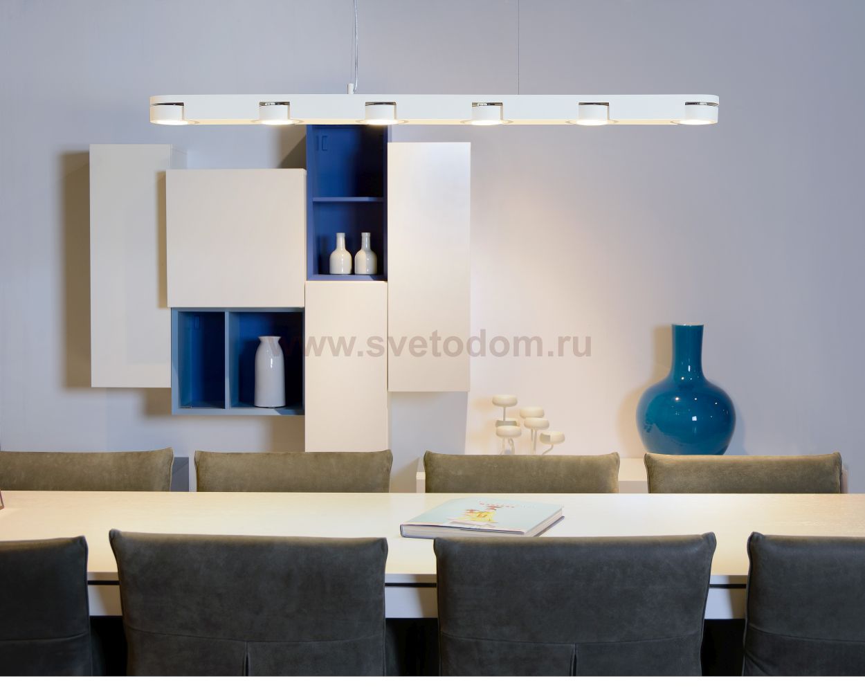 A modern puppet master. This Mitrax-LED pendant lamp from Lucide lets its four permanent LED spots move on their cords. The energy-efficient LED light sources of a maximum of 5W pamper the audience. You tilt and turn them 360 degrees. The spectators in your living room will appreciate the warm, white light of 3000 K. This white, aluminium lamp has a length of 127,5 centimetres. Connect these LED spots to an external dimmer and you put on the fantastic closing act.