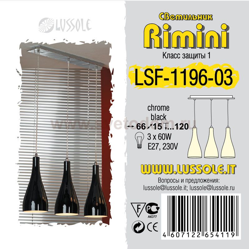 Светильник подвесной черный на 3 лампы Lussole LSF-1196-03 RIMINI