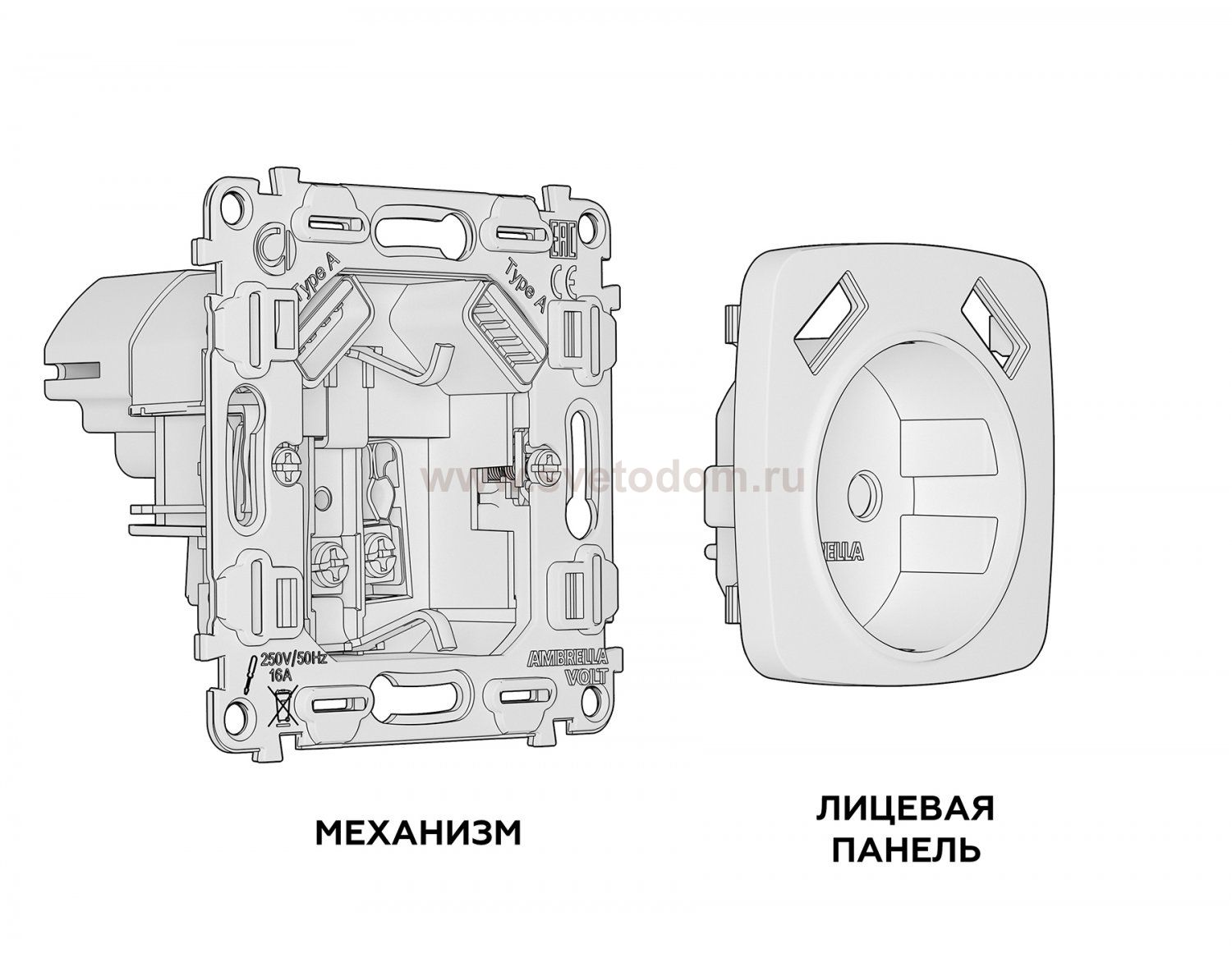 Многогранный ассортимент Ambrella Volt включает в себя механизмы, лицевые панели и рамки, а также комплекты, доступные в различных цветовых решениях. Продукция представлена в модульном исполнении, что позволяет гибко настраивать внешнийвид и функциональность. Вам будет легко заменить лицевую панель, рамку или механизм, найдя идеальное сочетание цветов.