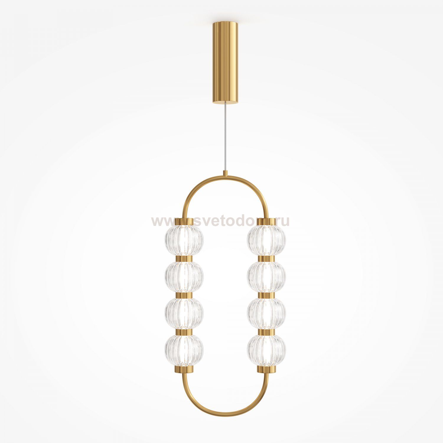 Арматура из металла, цвет – хром. Акцентный декор в виде рельефных сфер из литого стекла. Источник света – светодиодная лента – скрыта под акриловым рассеивателем. Регулируемая высота подвесных светильников.
