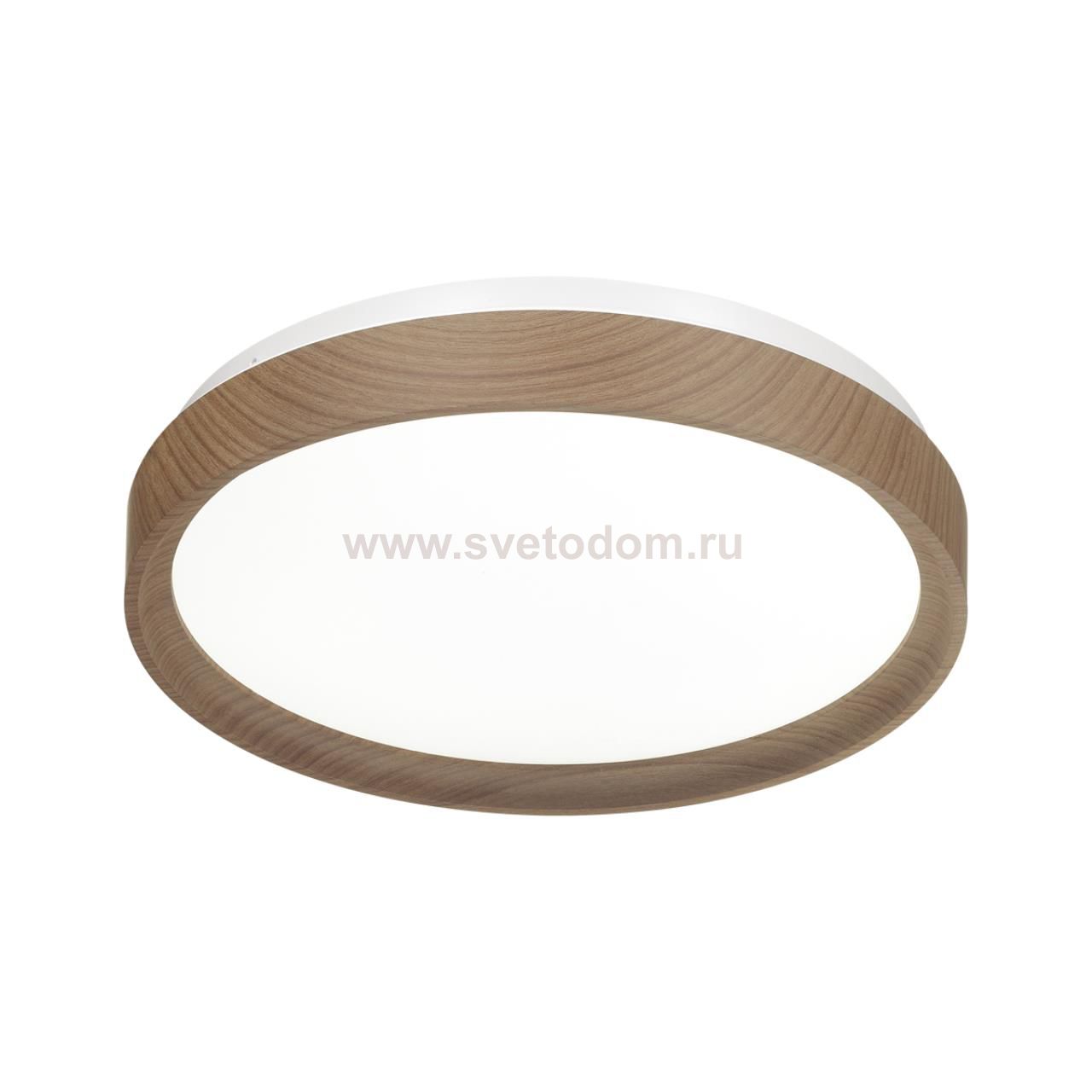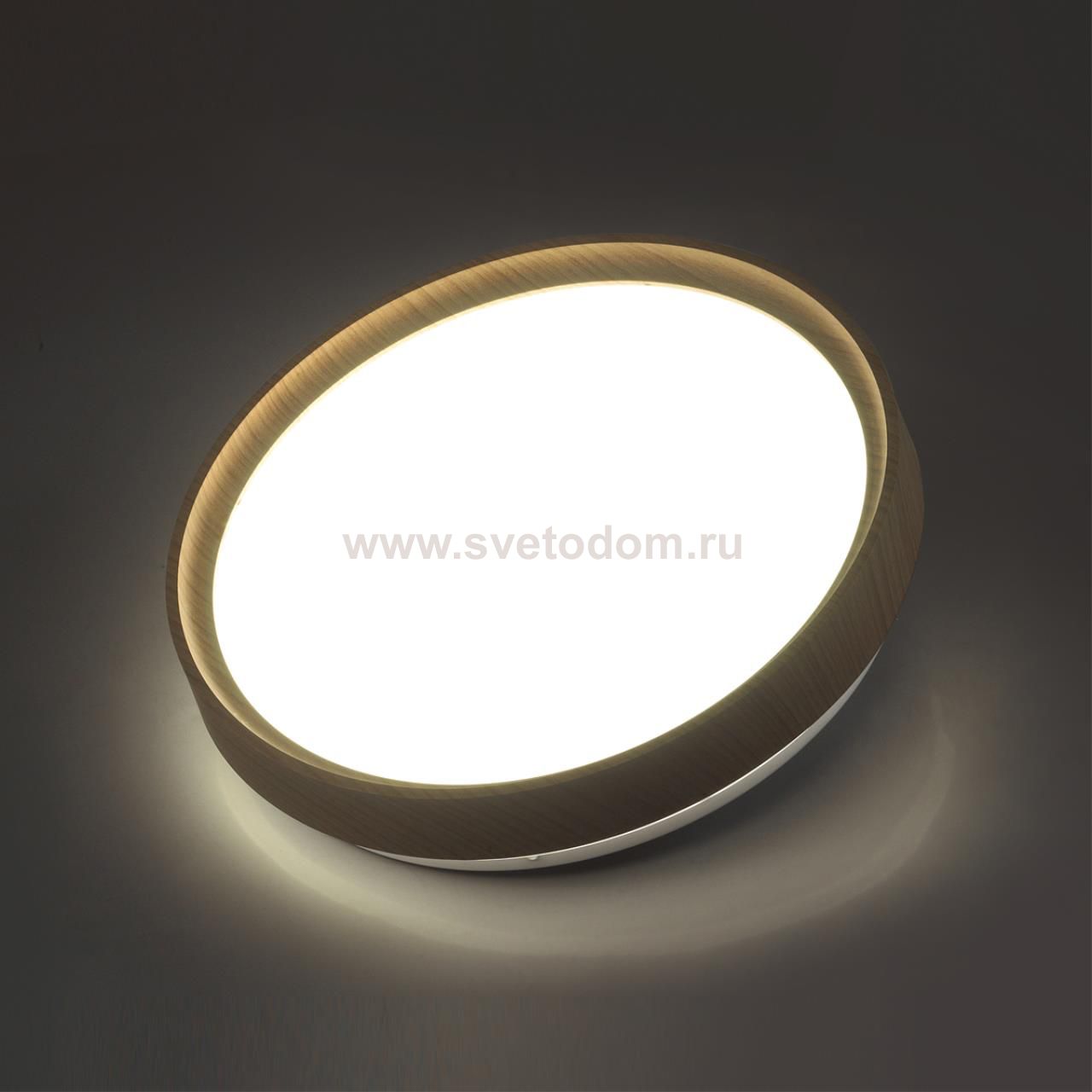 Светильник 7603/DL линии WOODI состоит из металлического основания (базы) и пластикового рассеивателя. Материал рассеивателя - высококачественный пластик марки PMMA 2.0 белого цвета с матовой поверхностью, без текстуры. Пластик обеспечивает светильнику равномерное рассеивание и хорошее светопропускание. Форма плафона: круглая, декорирована ободом светло-коричневого цвета "под дерево". Степень защиты IP43 позволяет использовать светильник в определенных зонах влажных помещений. В комплект входит заменяемый LED модуль с линзами, мощностью 48Вт, которая соответствует лампе накаливания 350Вт. А также пульт ДУ, с помощью которого осуществляется плавное изменение цветовой температуры 3000-6000К, изменение яркости, переход в режим переключения теплого/белого/холодного/ночного света. Светильник имеет функцию "память".