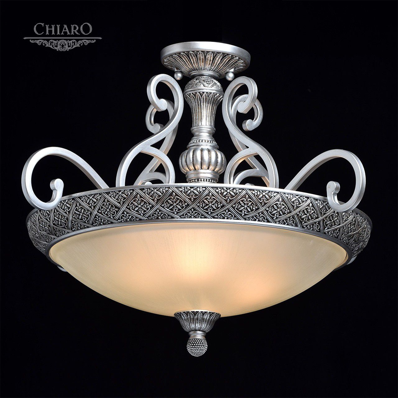 Выразительные формы легендарных светильников из коллекции Версаче выделяются своей изысканностью и гармоничным цветовым решением в стиле Кантри! Коллекция пополнилась новой моделью потолочного типа, рассчитанного на освещение просторных апартаментов. Стеклянные тонированные плафоны расположены в два яруса, что позволяет максимально распределять свет в пространстве. Объёмное основание имеет резной орнамент, выполненный с филигранной точностью, и окрашено под старинное серебро с лёгким эффектом патины. Непревзойдённость дизайна и качество воплощения восхитит каждого ценителя прекрасного!