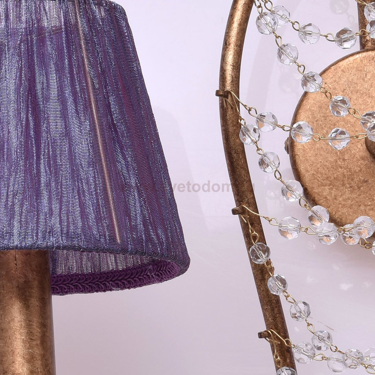 Металлическое основание цвета античной бронзы с эффектом патины, абажуры из ткани цвета "аметист", декоративные нити из прозрачного хрусталя Место применения